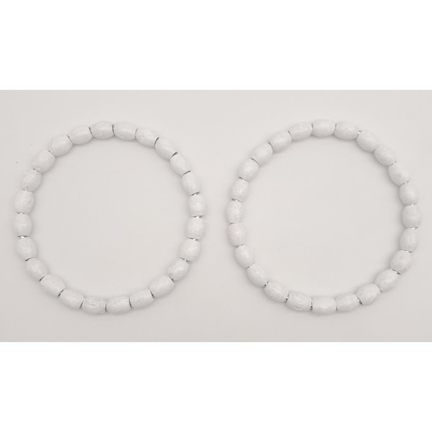 Çanta Aksesuar 12 cm Oval Ahşap Boncuklu Bilezik Model Beyaz Renk Çift Sap