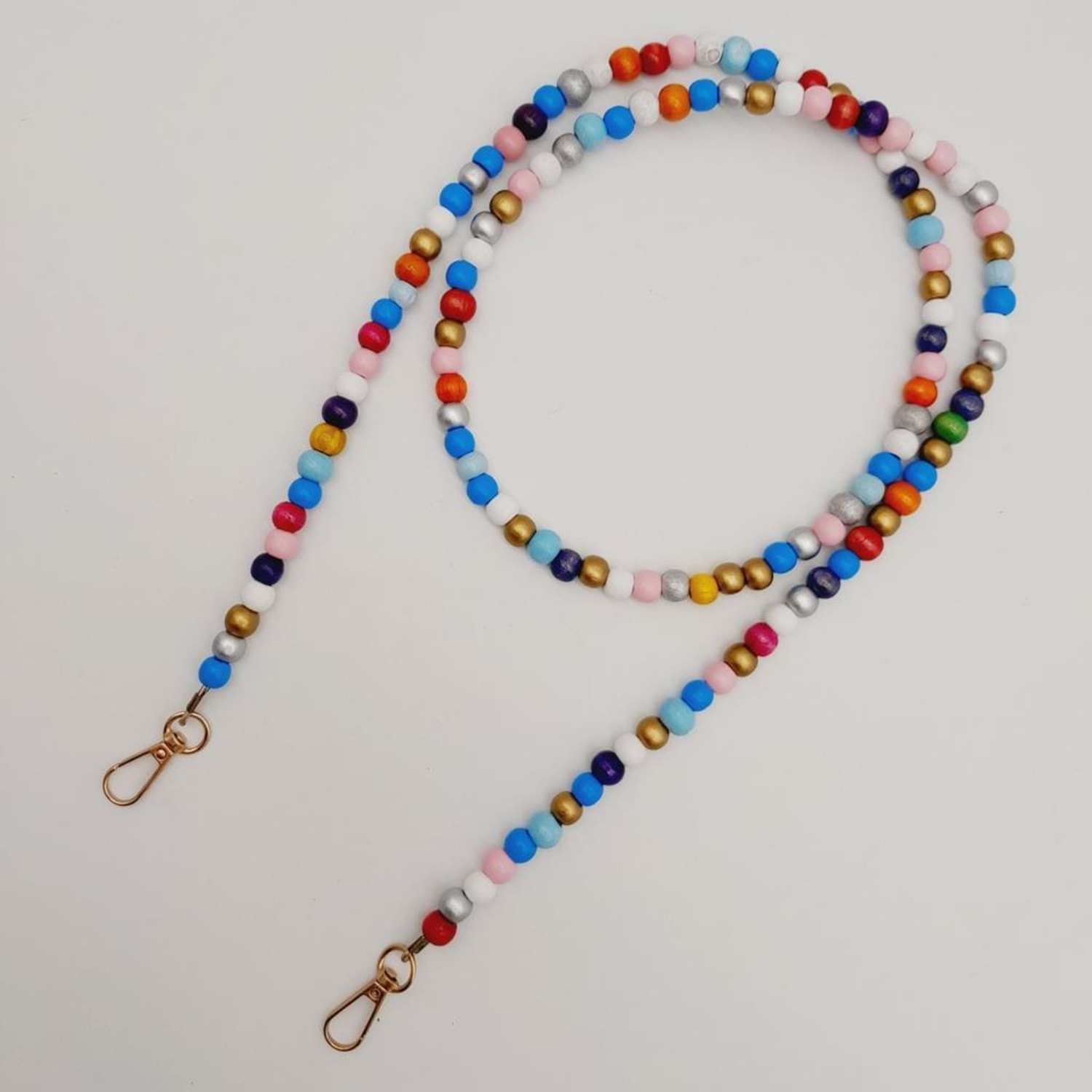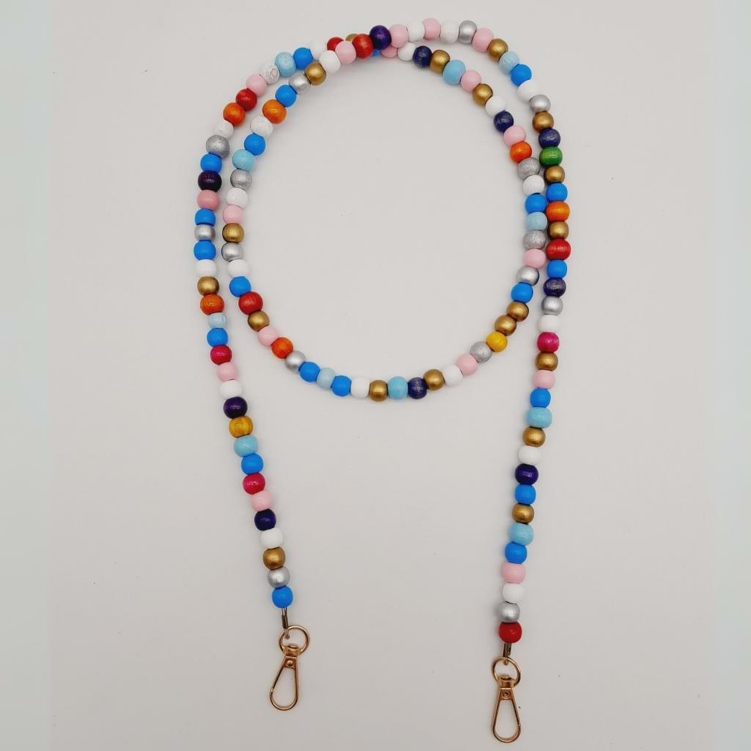 Çanta Aksesuar 120 cm Renkli 8 mm Ahşap Boncuklu Çanta Sapı Light Gold Metalli