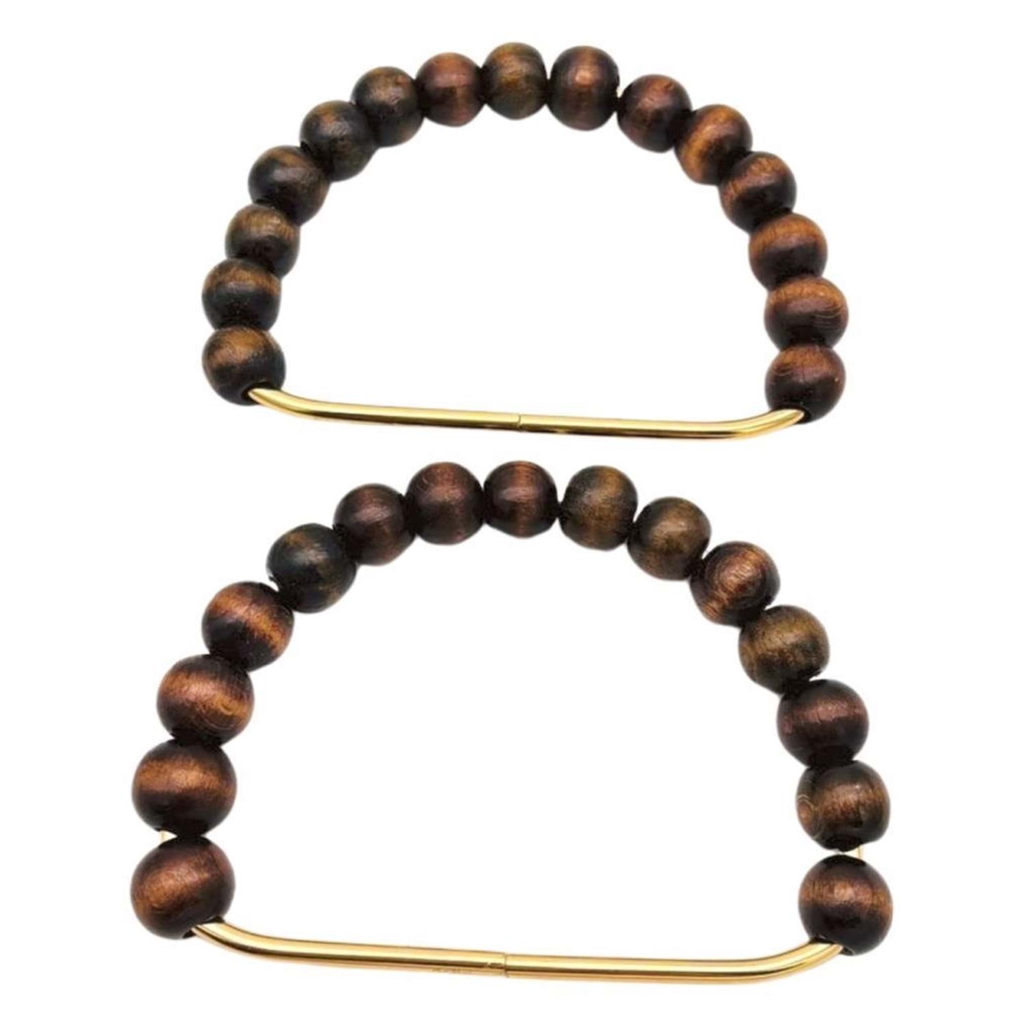 Çanta Aksesuar 12x10 cm D Model Ahşap Boncuklu Koyu Renk Çift Çanta Sapı
