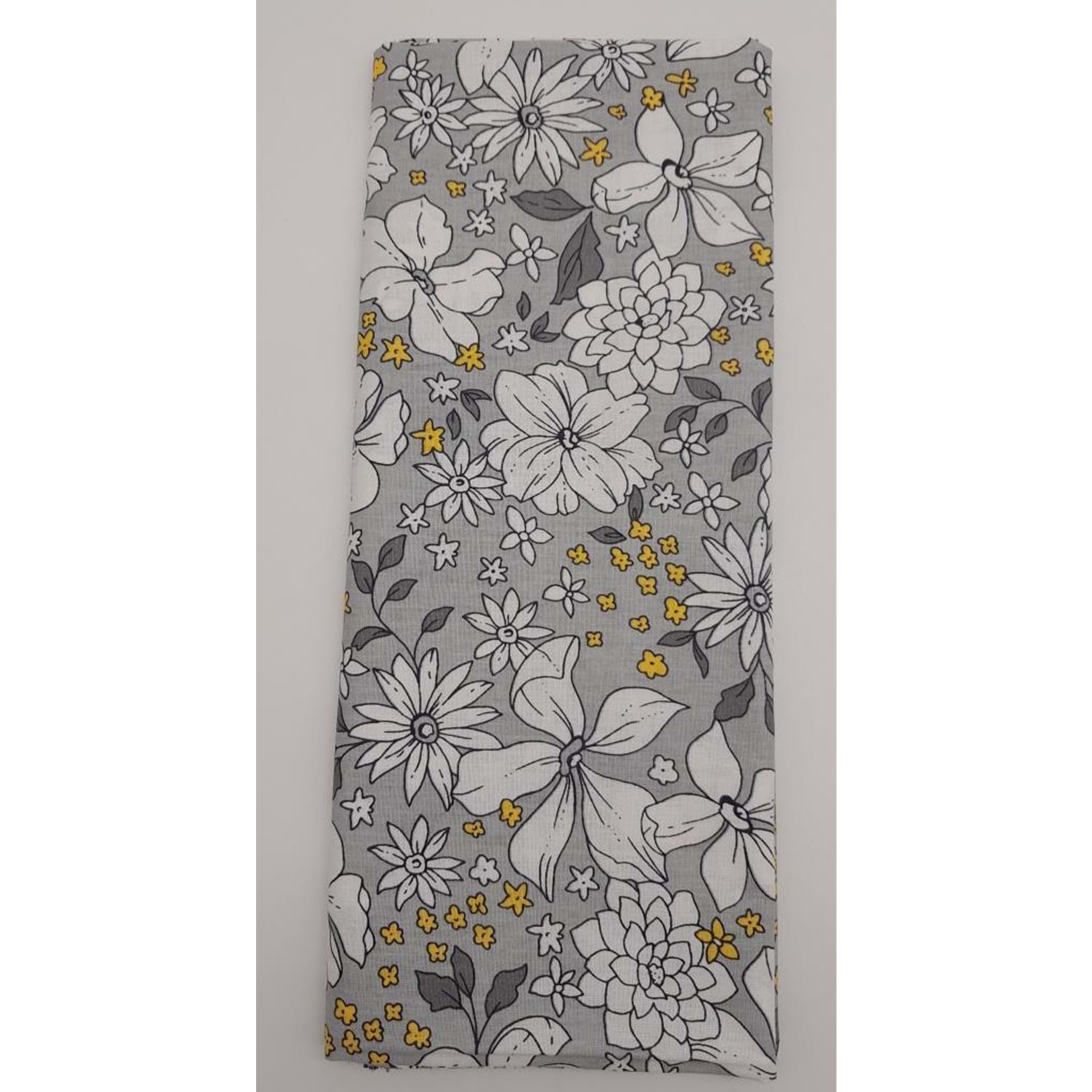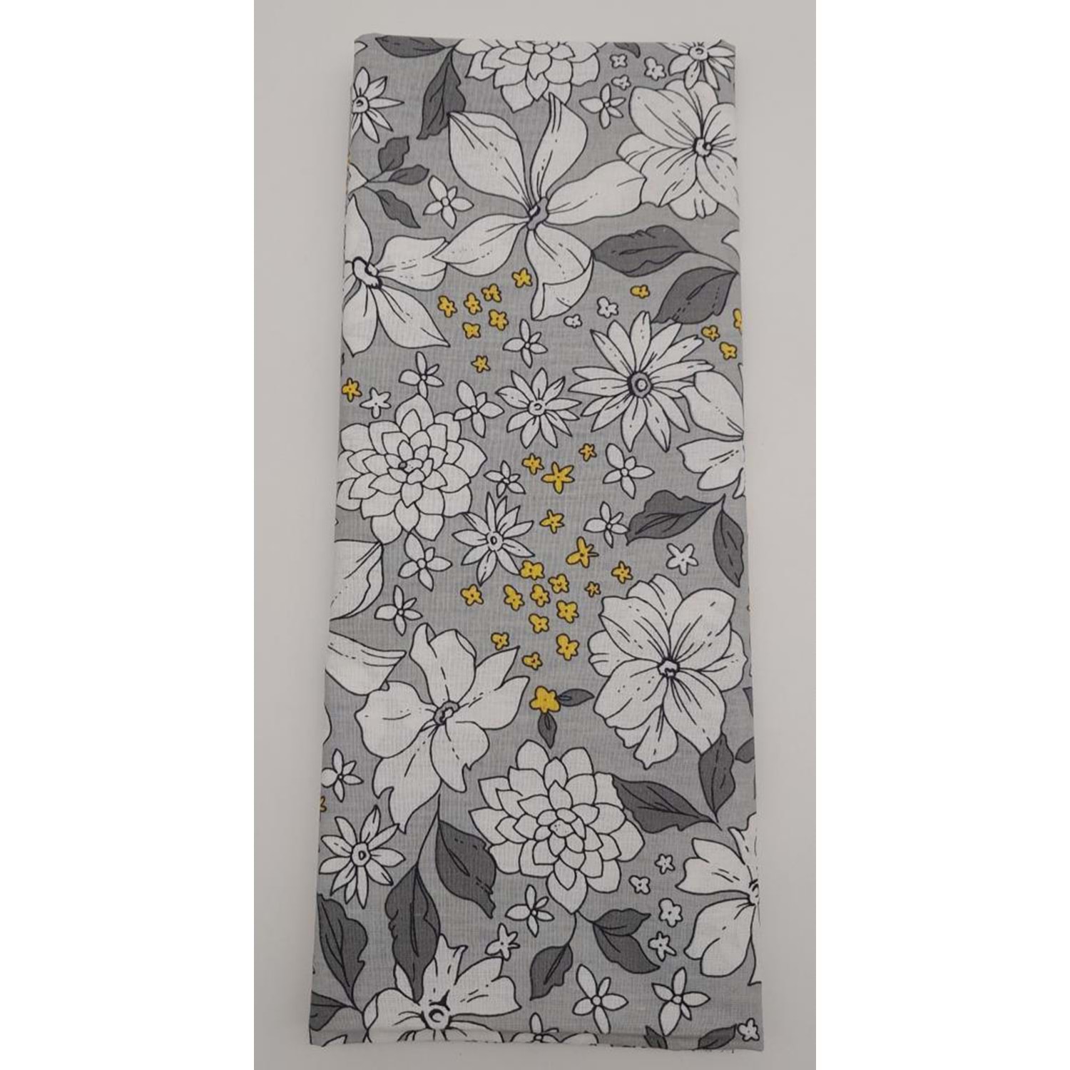 Çanta Aksesuar 120X50 Cm Gri Çiçekli Desen Pamuklu Astarlık Kumaş No:17