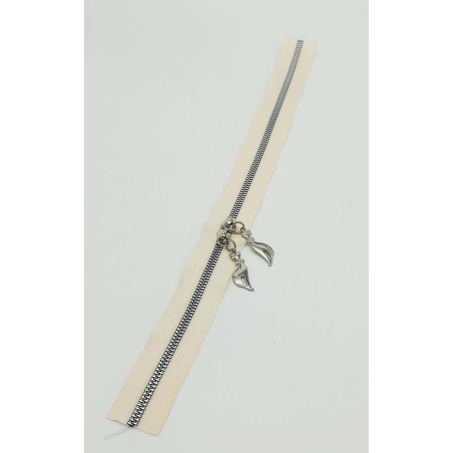 Çanta Aksesuar Çift Başlı Krem Fermuar Gümüş Metal 40 Cm