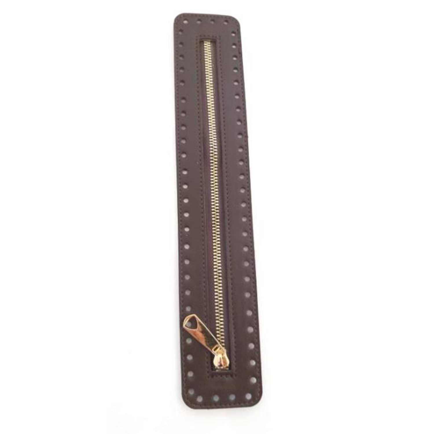 Çanta Aksesuar Derili Fermuar Yeni Model Koyu Kahve 30 Cm Light Gold