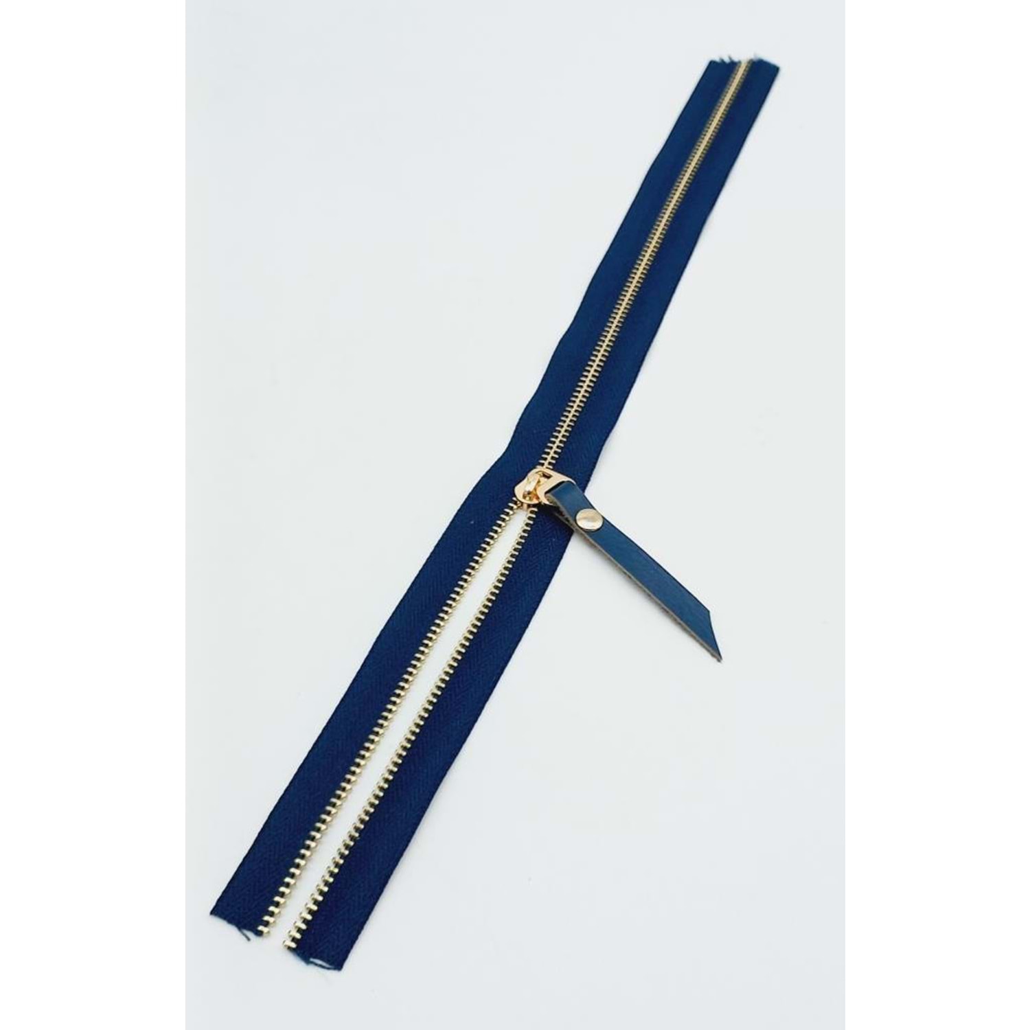Çanta Aksesuar Gerçek Deri Başlıklı Lacivert Fermuar 40 Cm Light Gold Metal