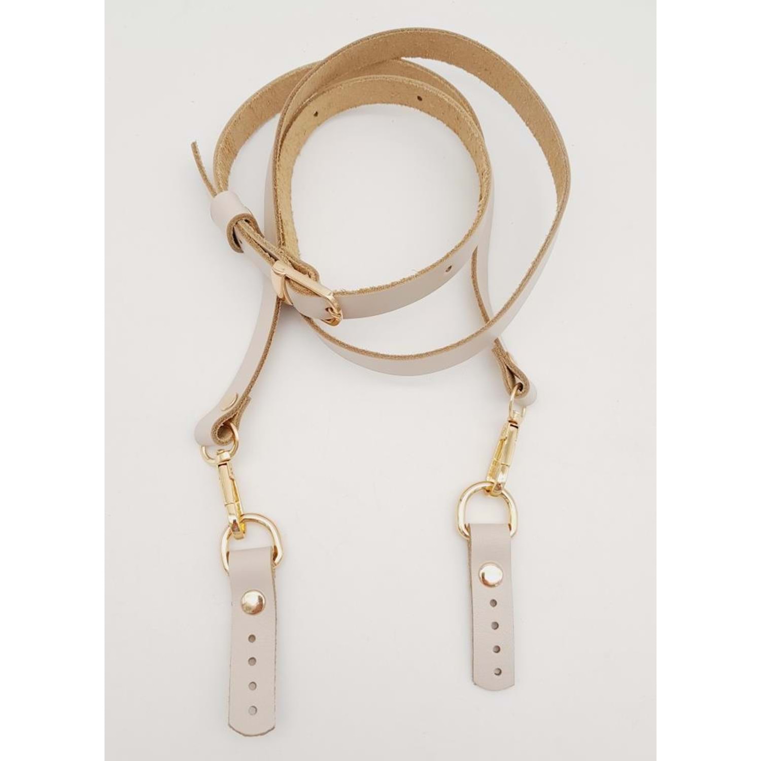 Çanta Aksesuar 130X1.5 cm Bej Gerçek Deri Light Gold Tokalı Çanta Sapı