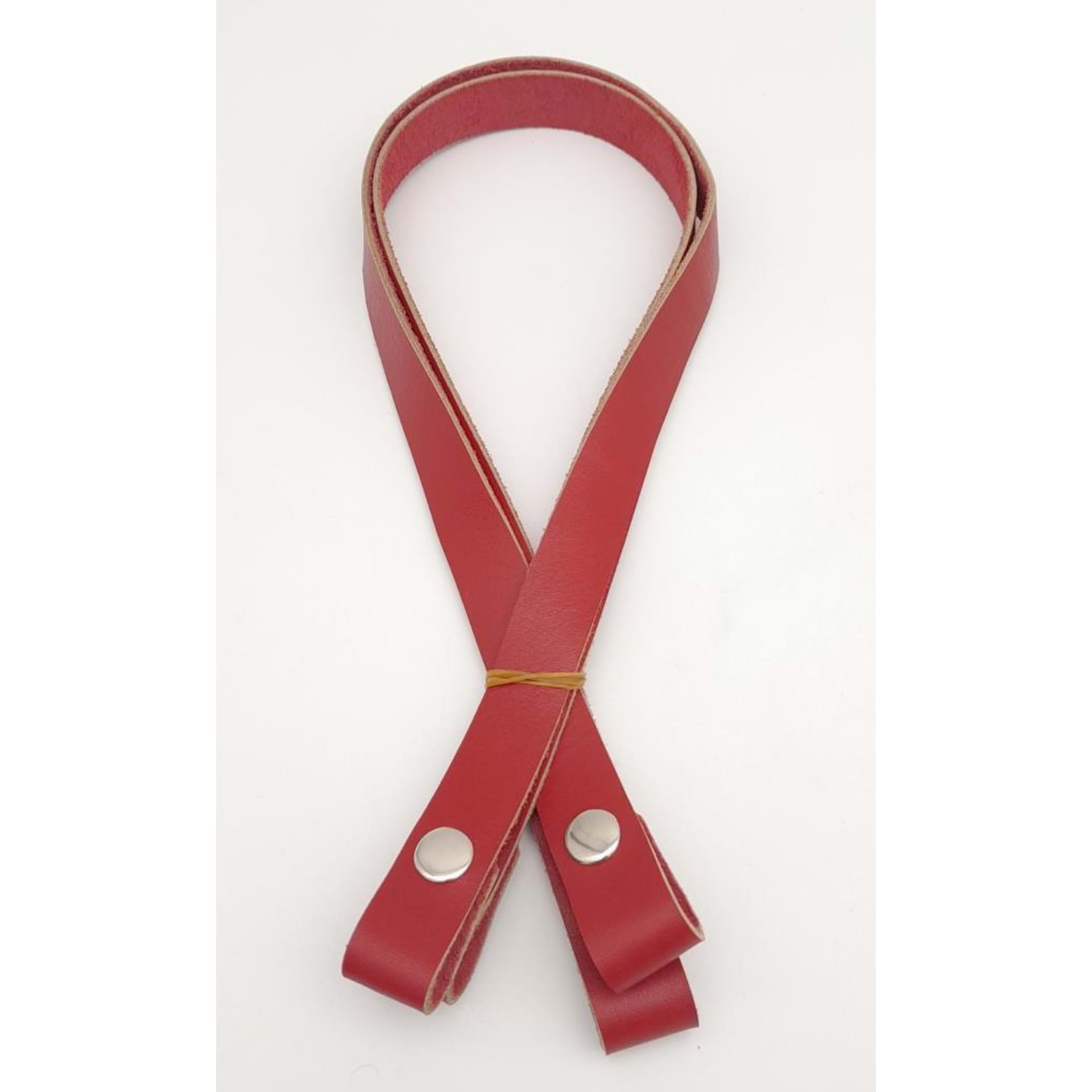 Çanta Aksesuar Kırmızı Tek Kat Gerçek Deri Çıtçıtlı Çanta Sapı Gümüş Metalli