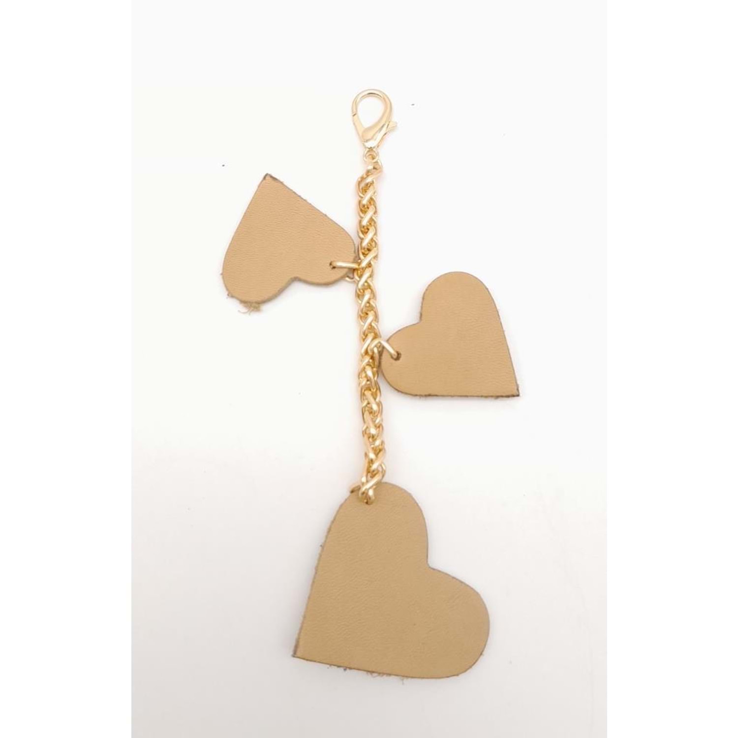 Çanta Aksesuar Ham Doğal Gerçek Deri Kalpli Süs Püskül Light Gold Zincirli
