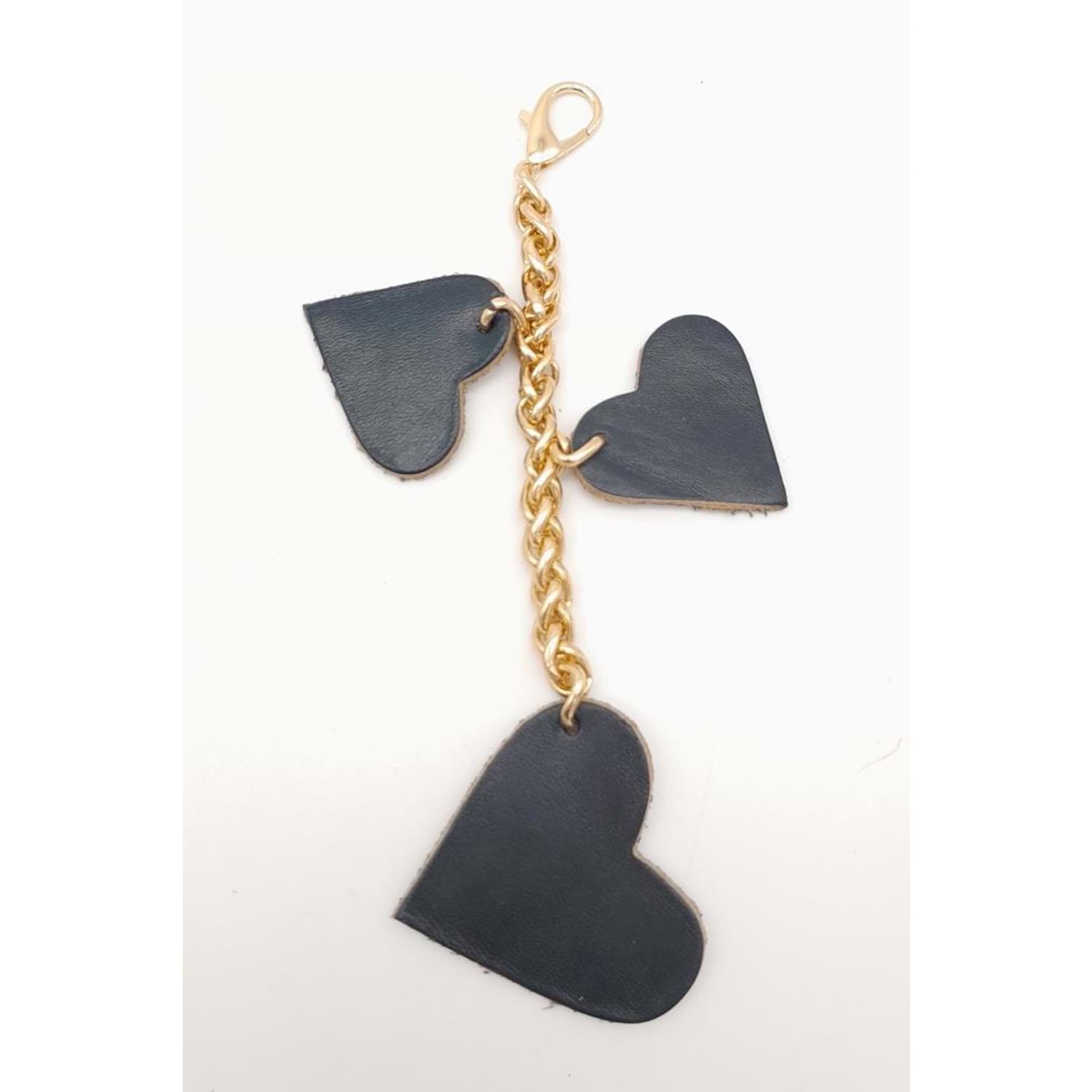 Çanta Aksesuar Lacivert Gerçek Deri Kalpli Süs Püskül Light Gold Zincirli