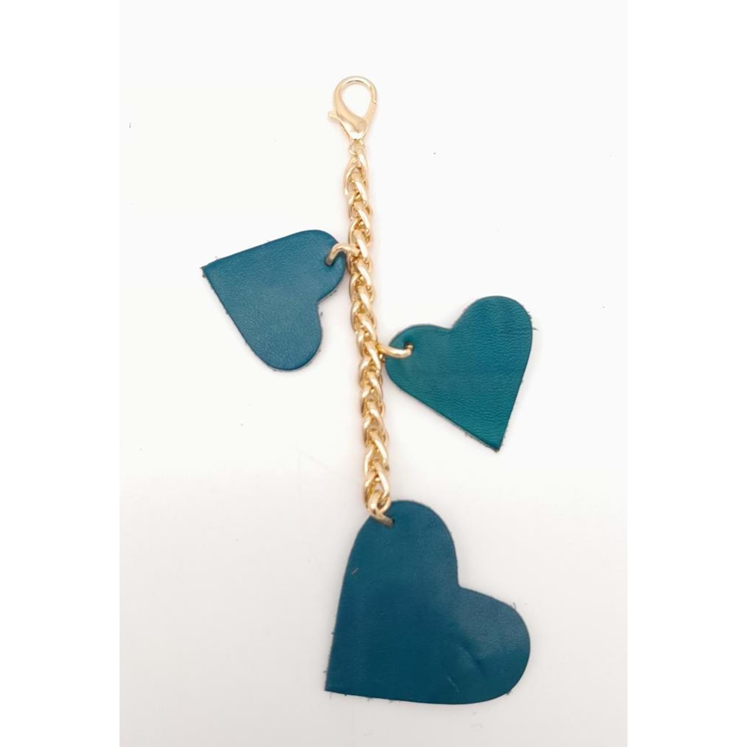 Çanta Aksesuar Turkuaz Gerçek Deri Kalpli Süs Püskül Light Gold Zincirli