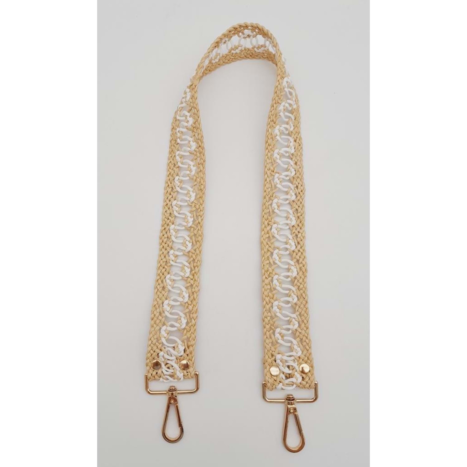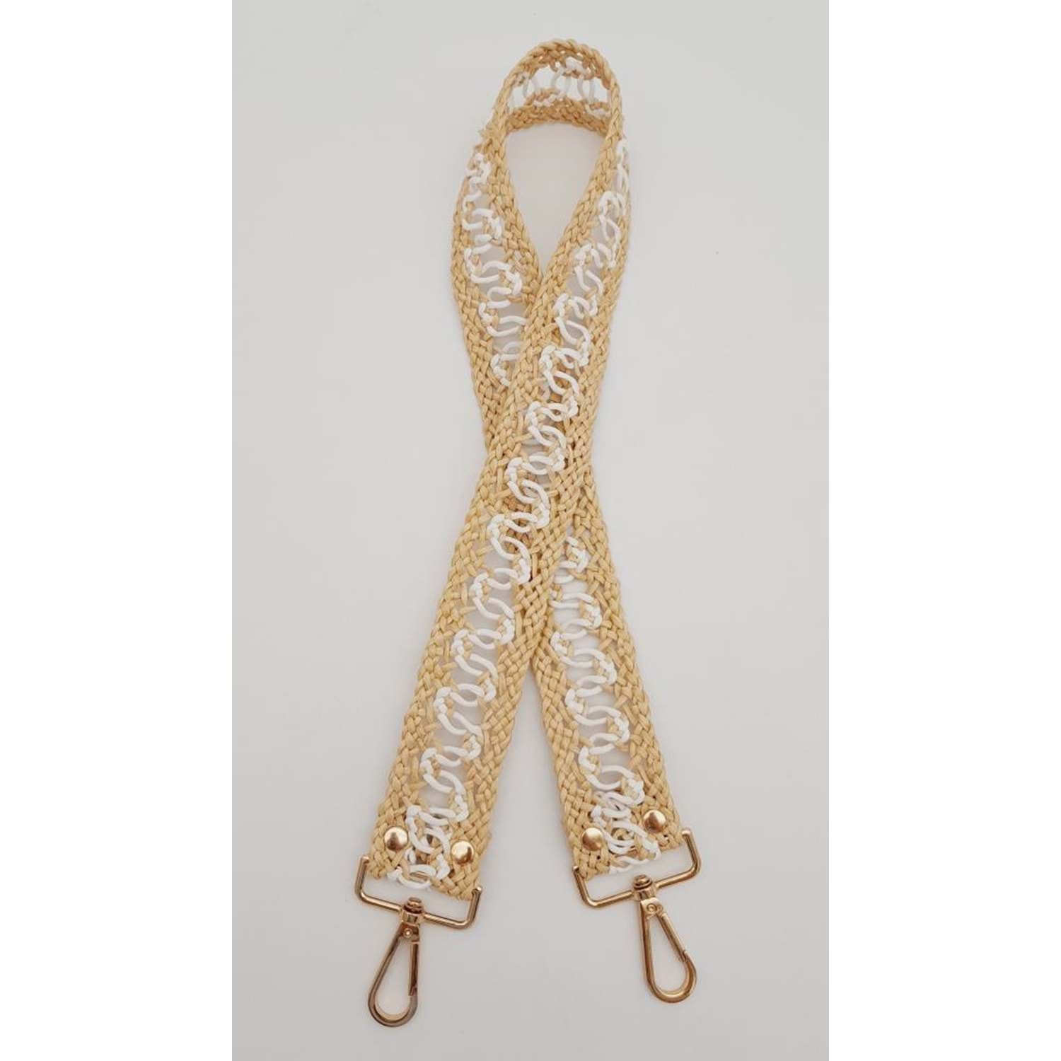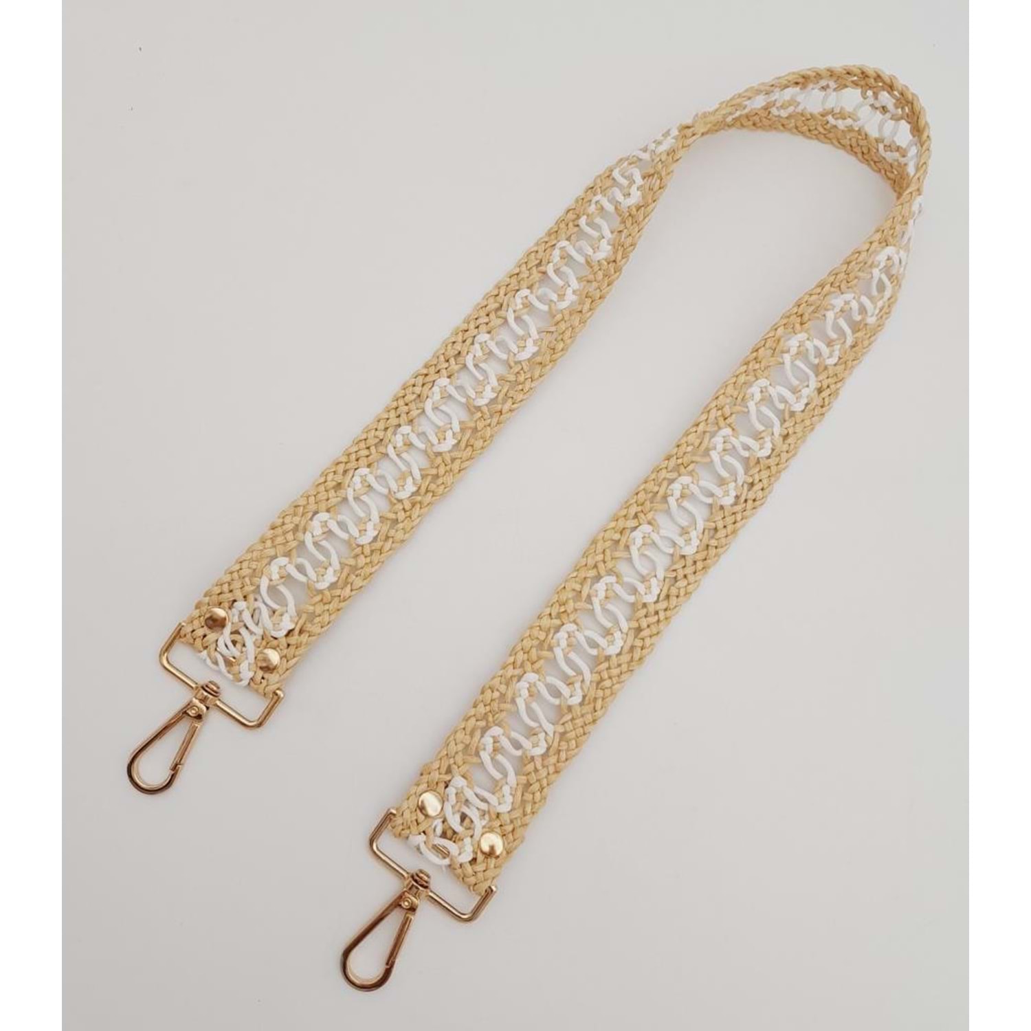 Çanta Aksesuar Ledi Hasır Örgü Model Bej Beyaz Çanta Sapı Light Gold Metalli