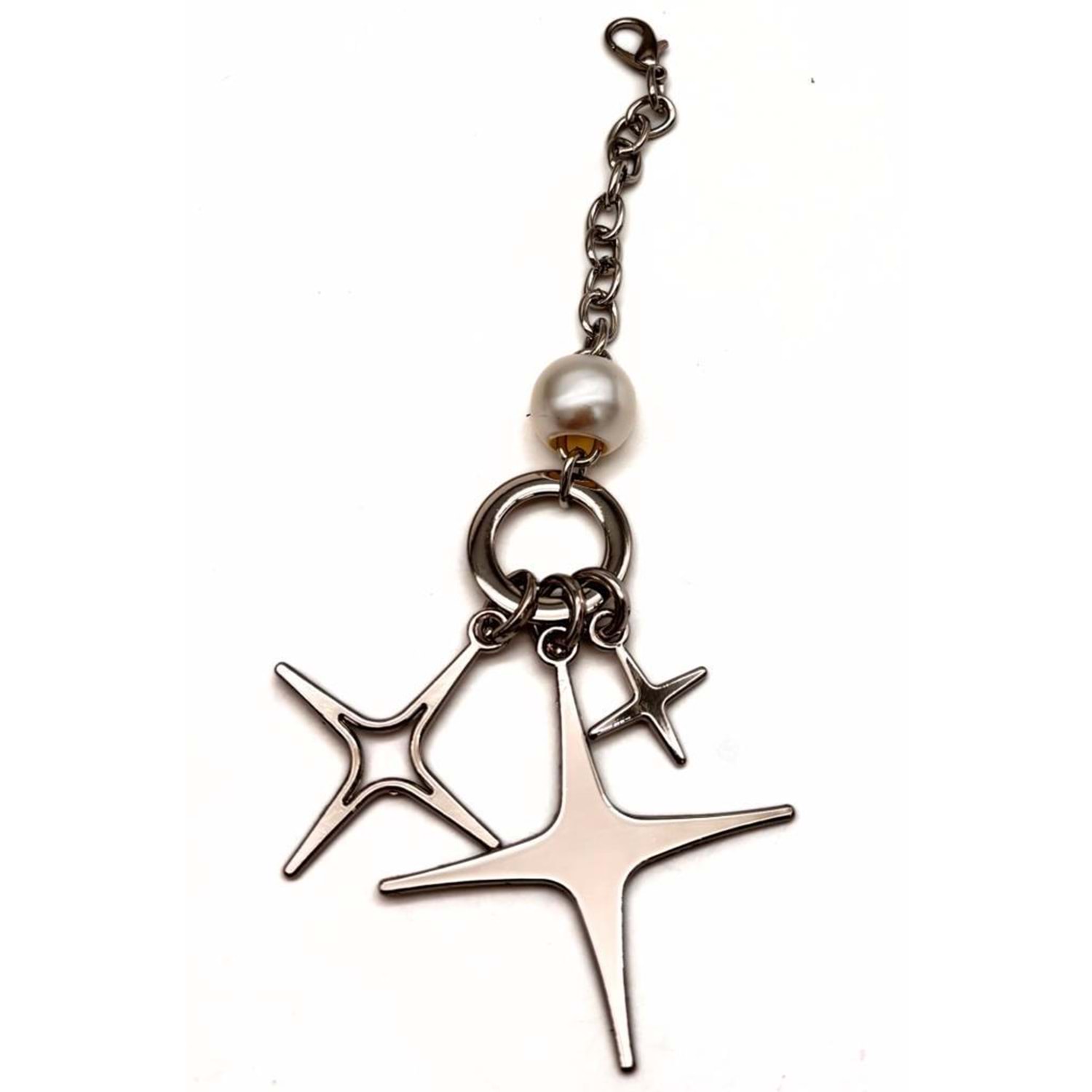 Çanta Aksesuar Gümüş Renk Sarkaç Süs İncili 3 Metalli