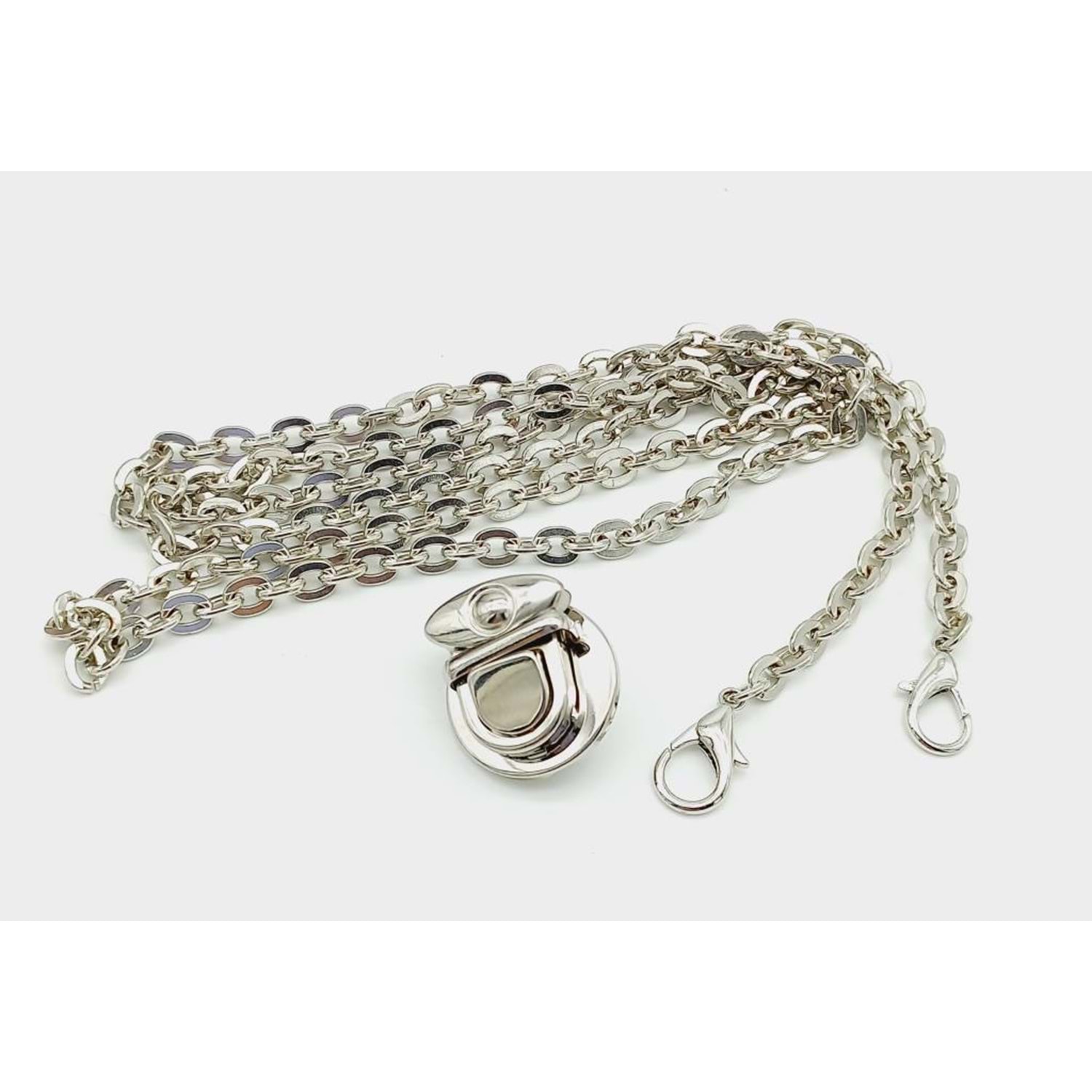 Çanta Aksesuar Gümüş Renk Kancalı Düz Zincir Kilit Set