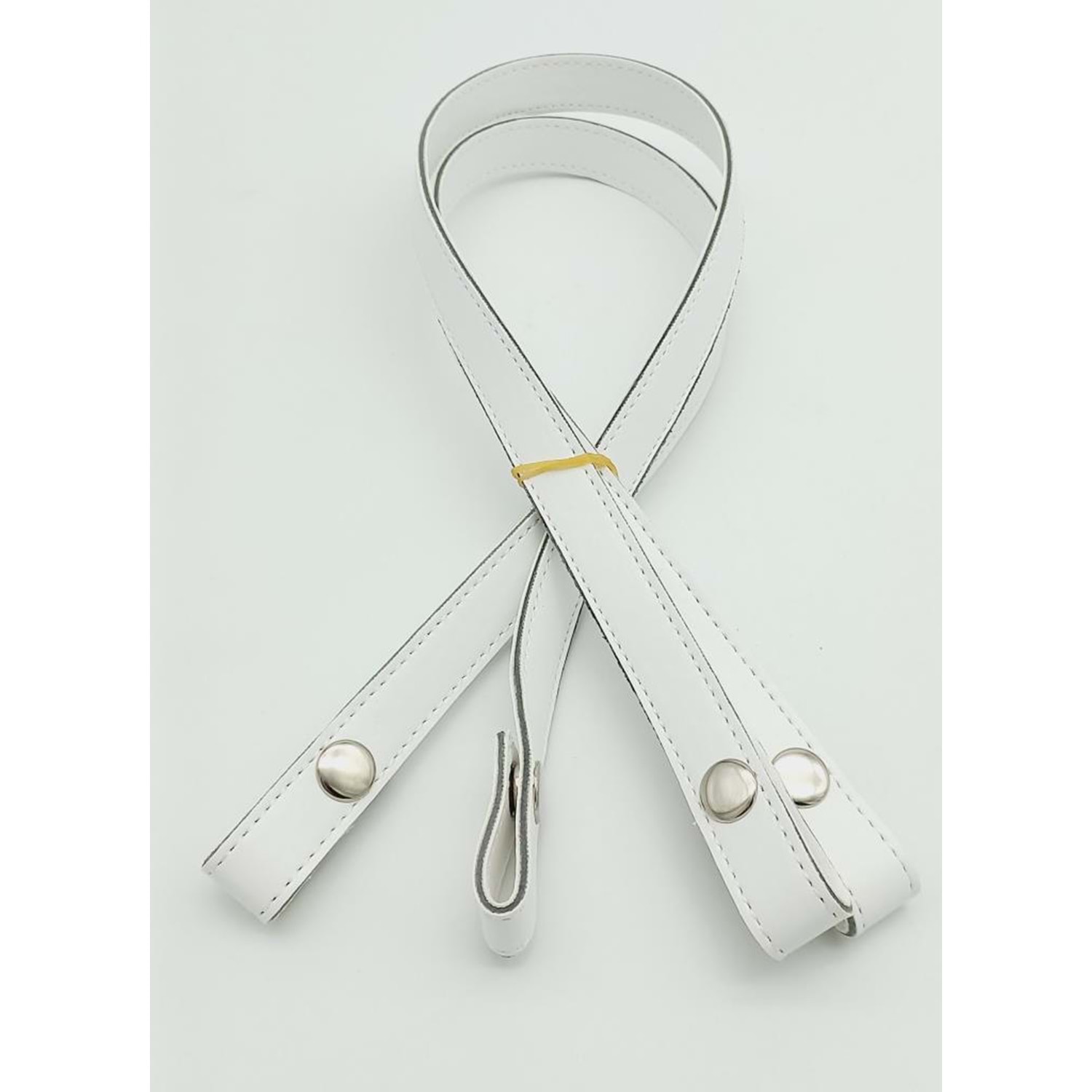 Çanta Aksesuar Çift Kat Dikişli Suni Deri Beyaz Çıtçıtlı Çanta Sapı 70 cm Gümüş Metalli