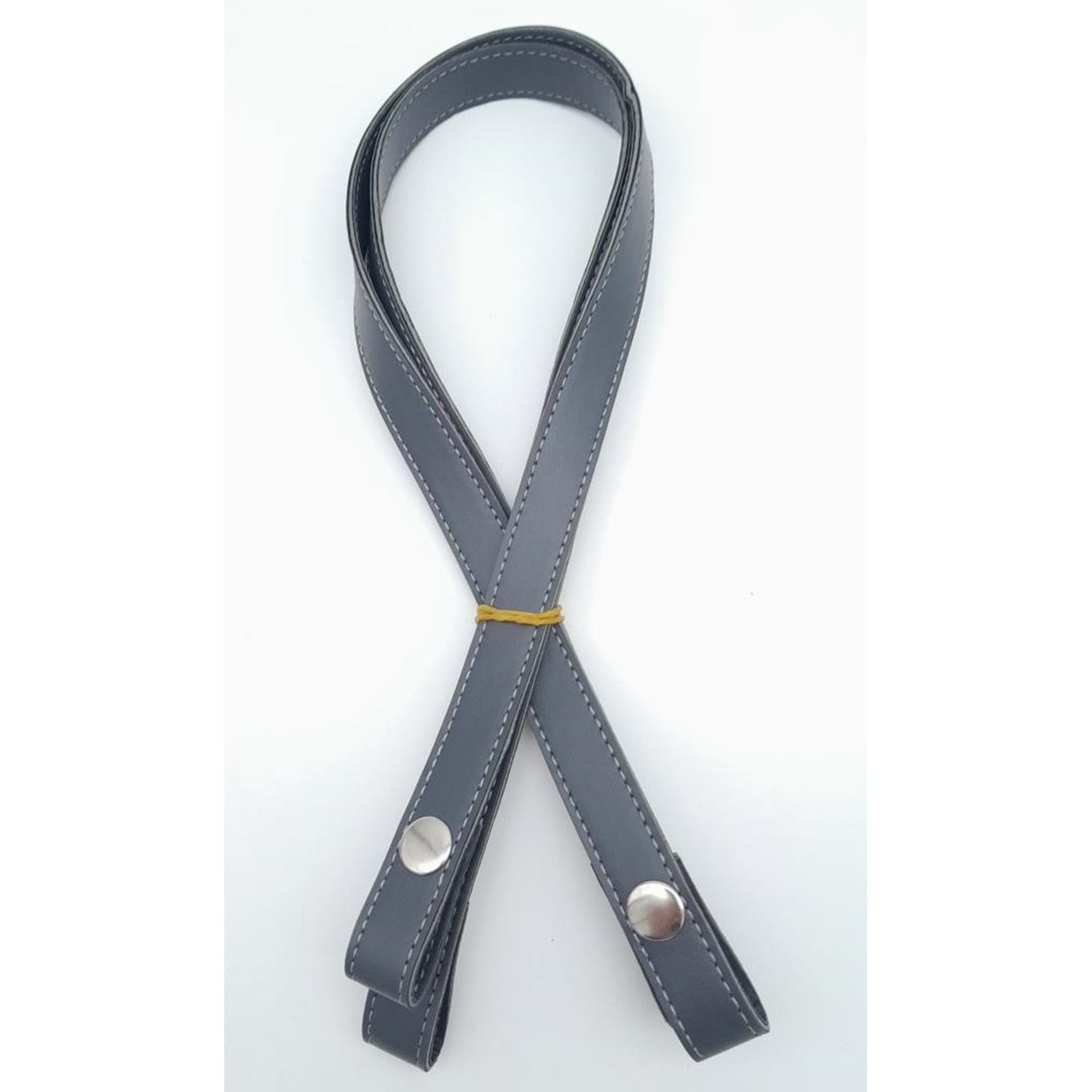 Çanta Aksesuar Çift Kat Dikişli Suni Deri Gri Çıtçıtlı Çanta Sapı 70 cm Gümüş Metalli