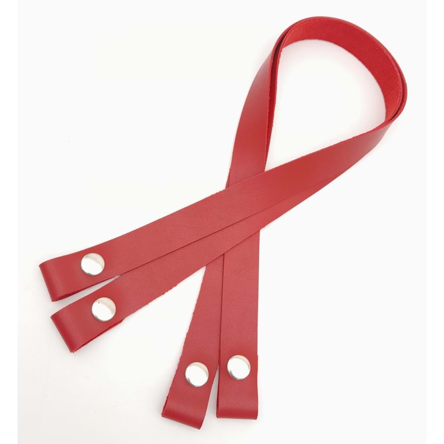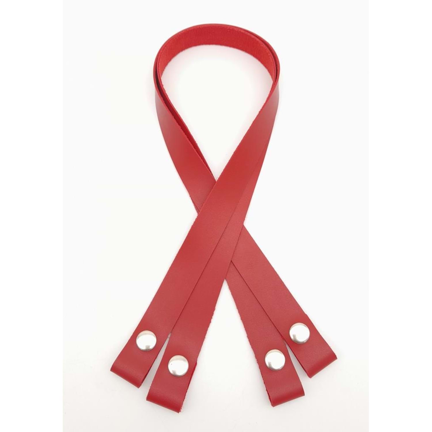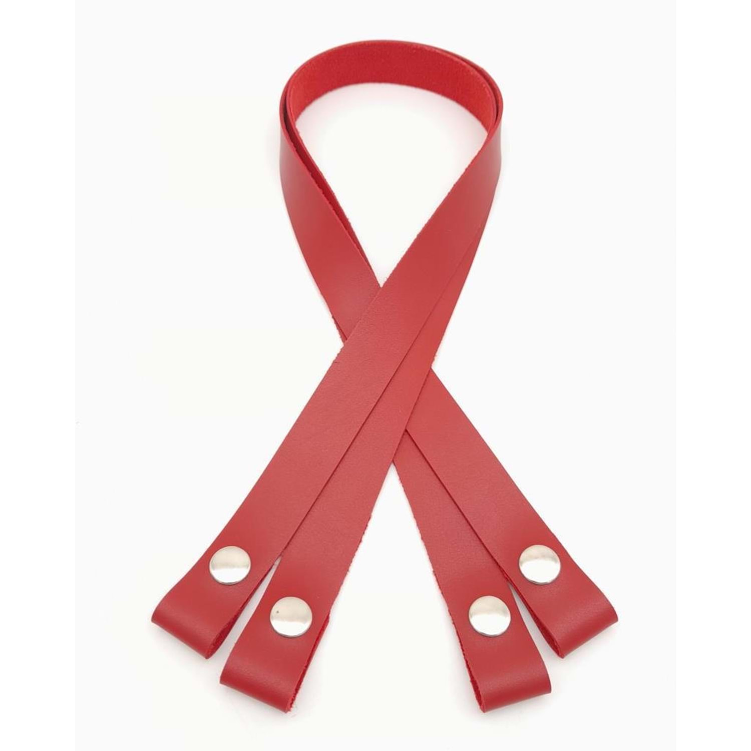 Çanta Aksesuar Tek Kat Suni Deri Kırmızı Çıtçıtlı Çanta Sapı Gümüş Metalli