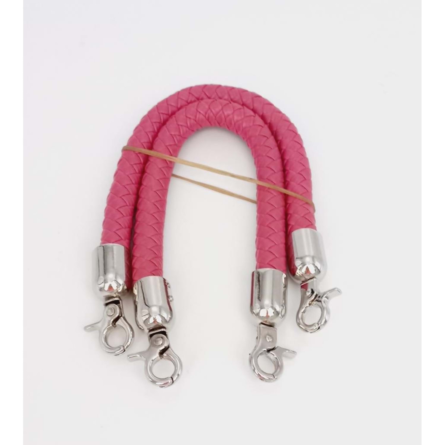 Çanta Aksesuar Fuşya Kısa Örme Çanta Sapı Gümüş Metal