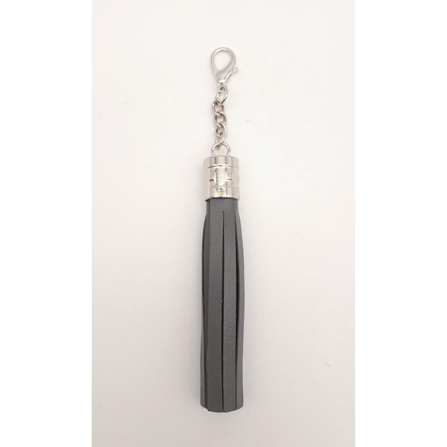 Çanta Aksesuar Gri Suni Deri Kovanlı Püskül Gümüş Metalli