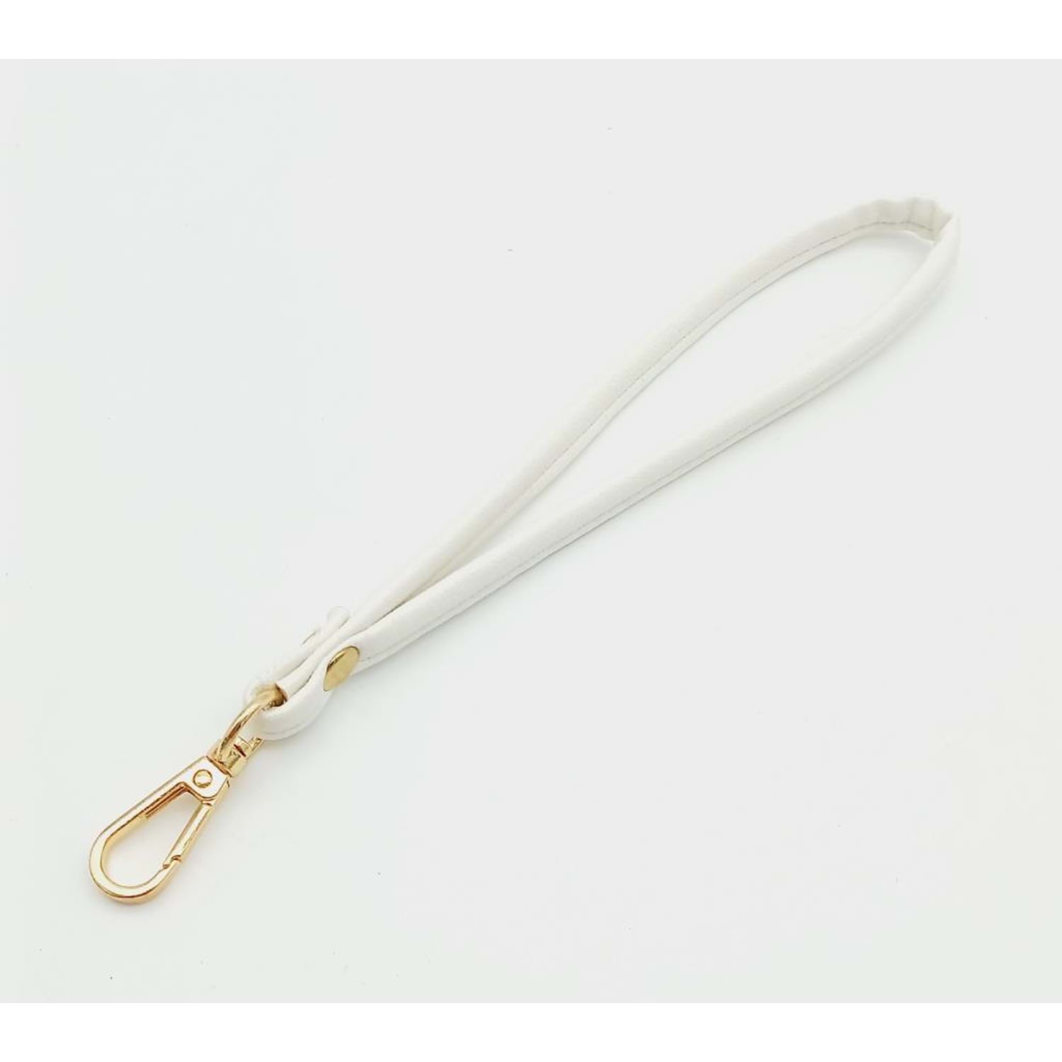 Çanta Aksesuar Dikişli Suni Deri Beyaz Renk Elcik Light Gold Metal