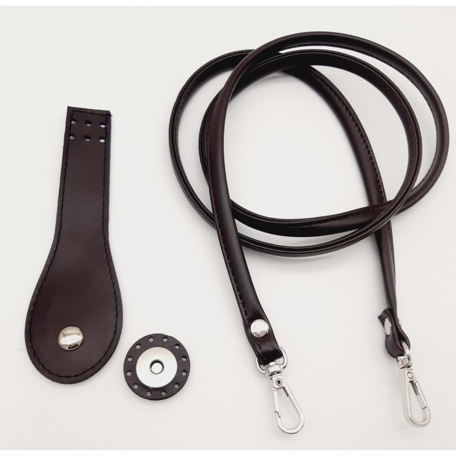 Çanta Aksesuar Suni Deri Cep Telefonu Seti Dikişli Kahverengi Gümüş Metalli
