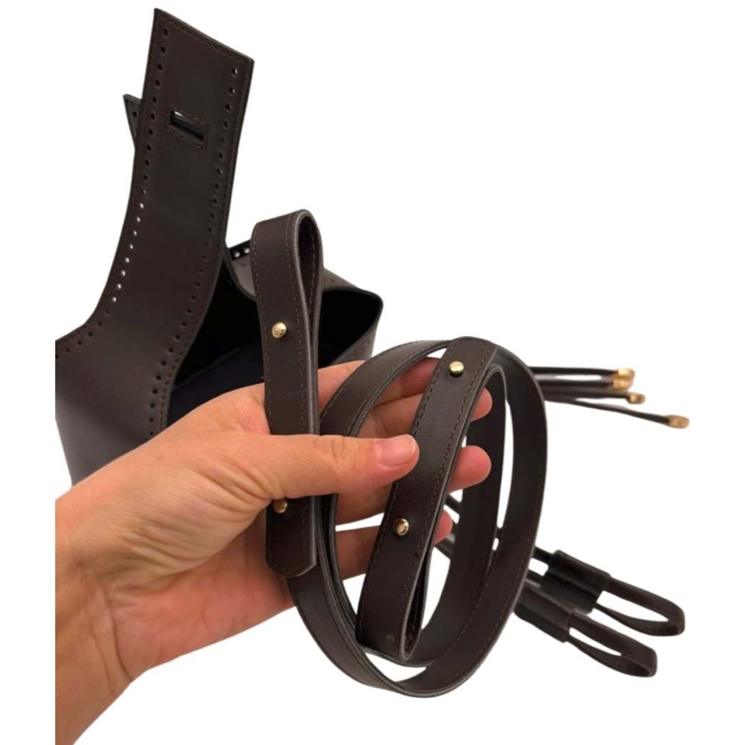 Çanta Aksesuar Torba2 Model Çanta Yapım Aparatı Koyu Kahve Renk Light Gold Metalli