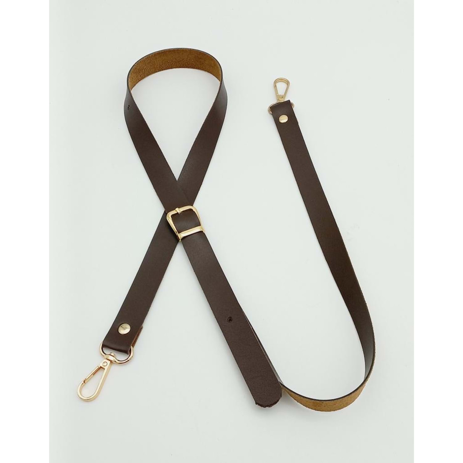 Çanta Aksesuar 120X2 Cm Tek Kat Kahverengi Suni Deri Light Gold Tokalı Çanta Sapı