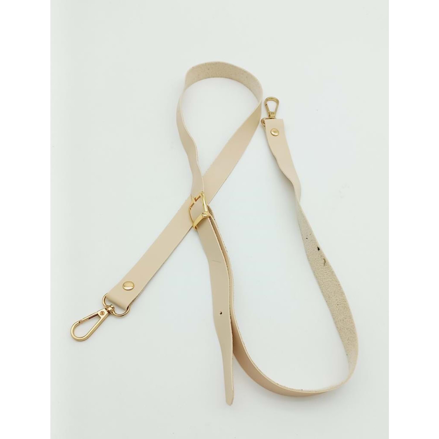 Çanta Aksesuar 120X2 Cm Tek Kat Krem Suni Deri Light Gold Tokalı Çanta Sapı