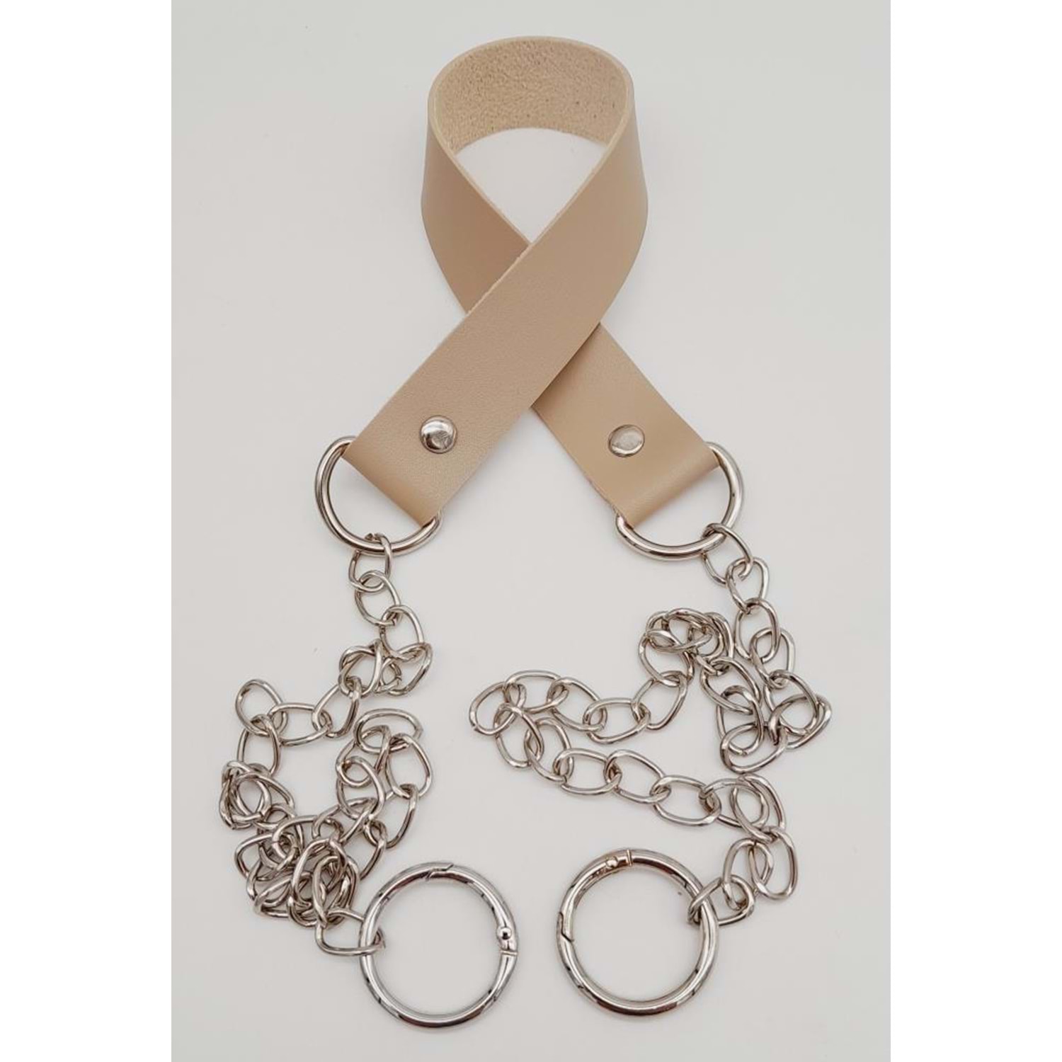 Çanta Aksesuar Tek Kat Suni Deri Bej Renk İnce Zincirli Sap Gümüş Metal