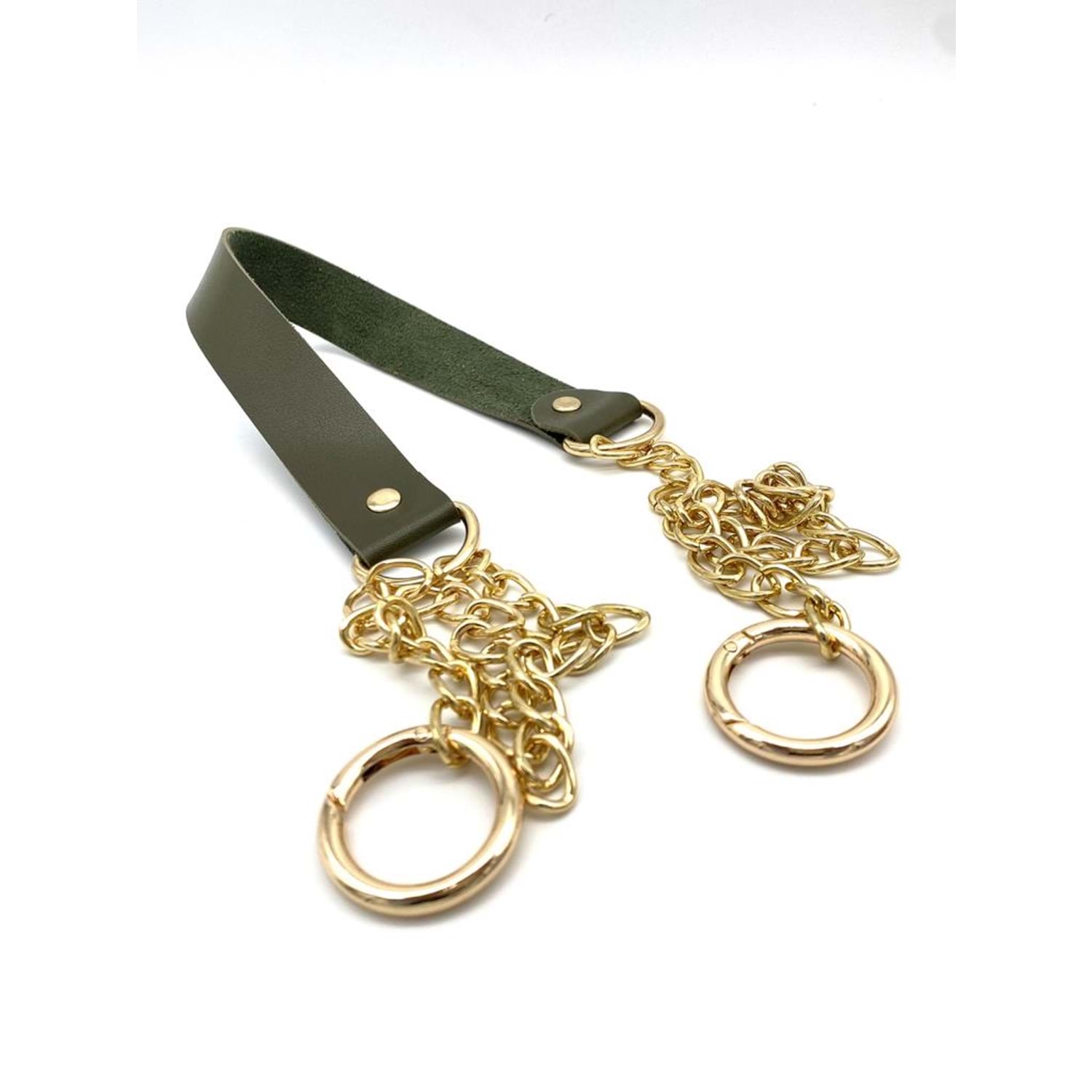Çanta Aksesuar Tek Kat Suni Deri Haki Renk İnce Zincirli Sap Light Gold Metal