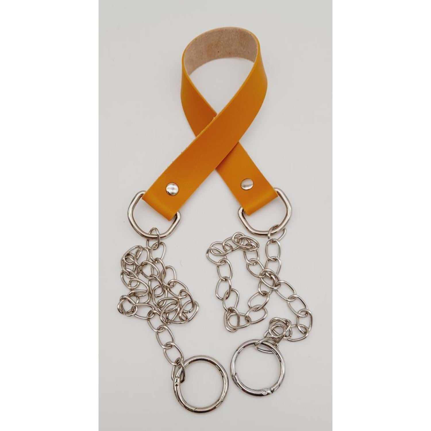 Çanta Aksesuar Tek Kat Suni Deri Hardal Renk İnce Zincirli Sap Gümüş Metal