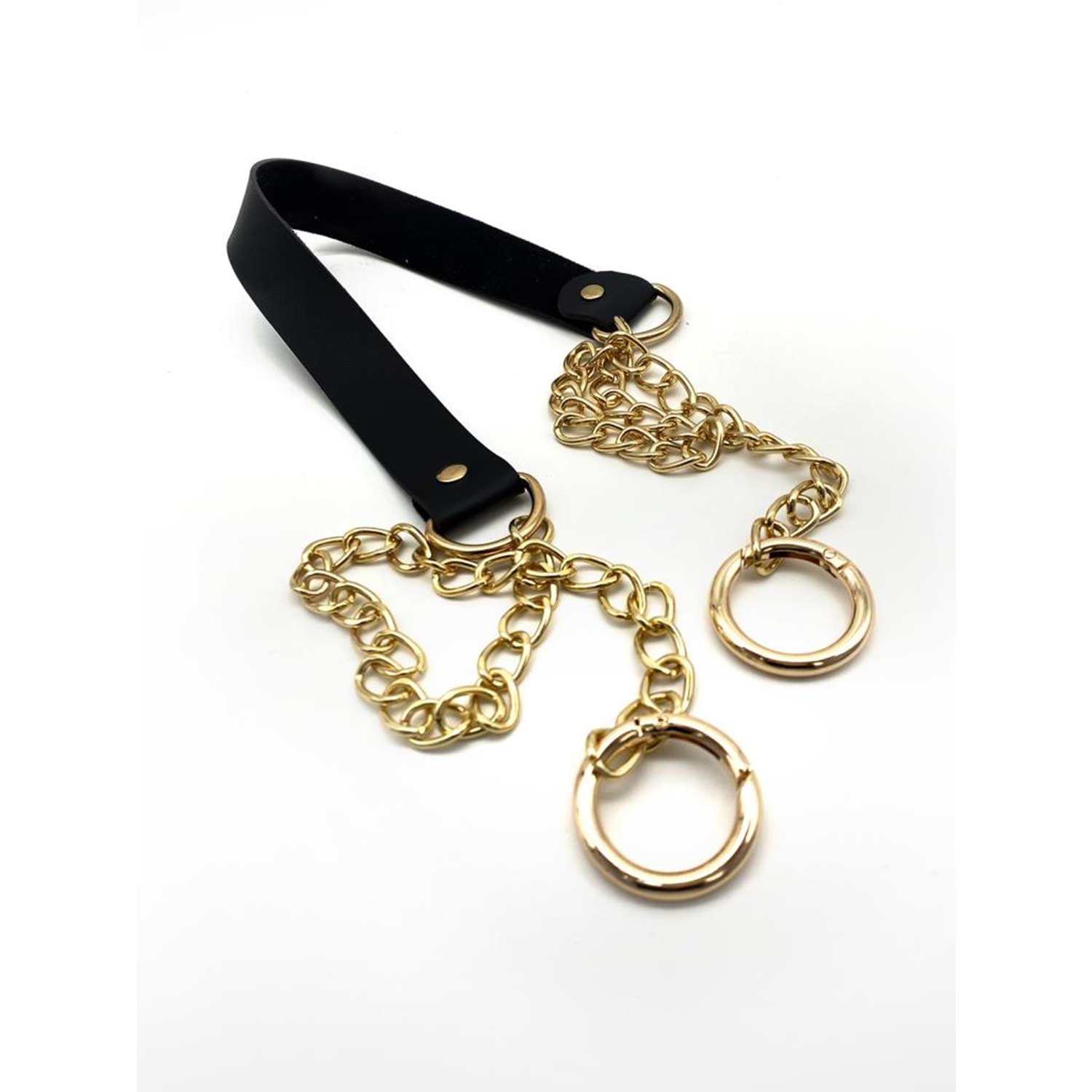 Çanta Aksesuar Tek Kat Suni Deri Siyah Renk İnce Zincirli Sap Light Gold Metal