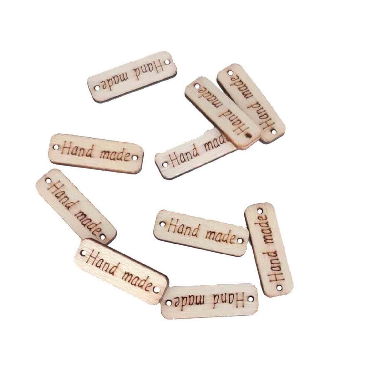 Üzerinde Handmade yazmaktadır. İki kenarında dikme delikleri açılmıştır. Dikme deliklerinden dikilerek örgü çantaya monte edilir.