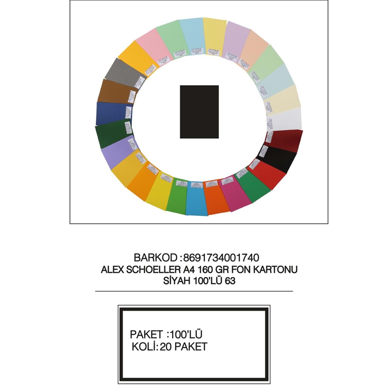 Alex Schoeller Fon Kartonu Kolej Serisi A4 160 GR 63 Siyah (1 Adet)
