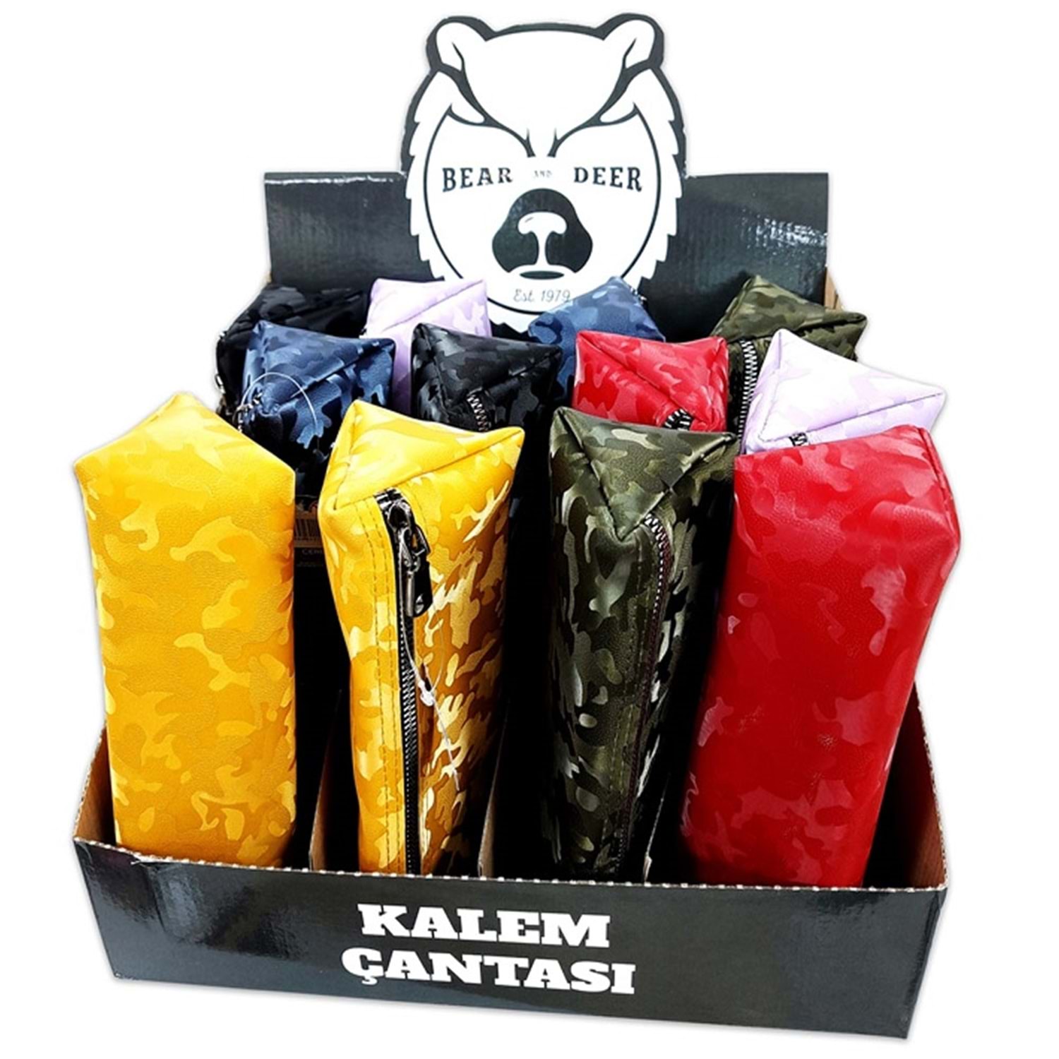 B&D Kalem Çantası Üçgen Suni Deri Kamuflaj Desenli