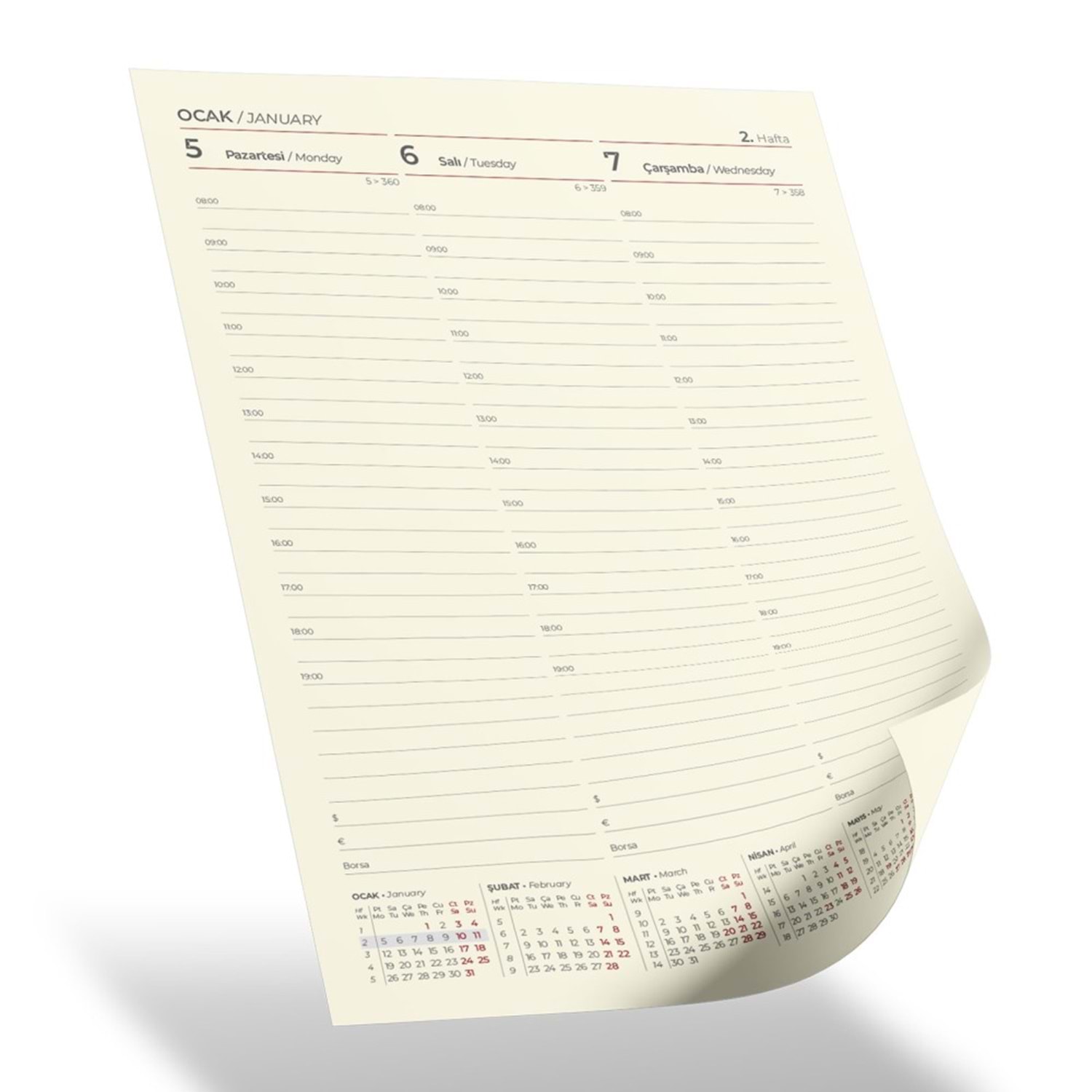 *20 x 28 cm *Haftalık Ajanda *Termo Deri Kapak *Yuvarlak Köşe *Spiralli *İç Blok: *144 sayfa *Ivory 90 gr. Kağıt *Baskı: Sıcak, UV, Serigrafi