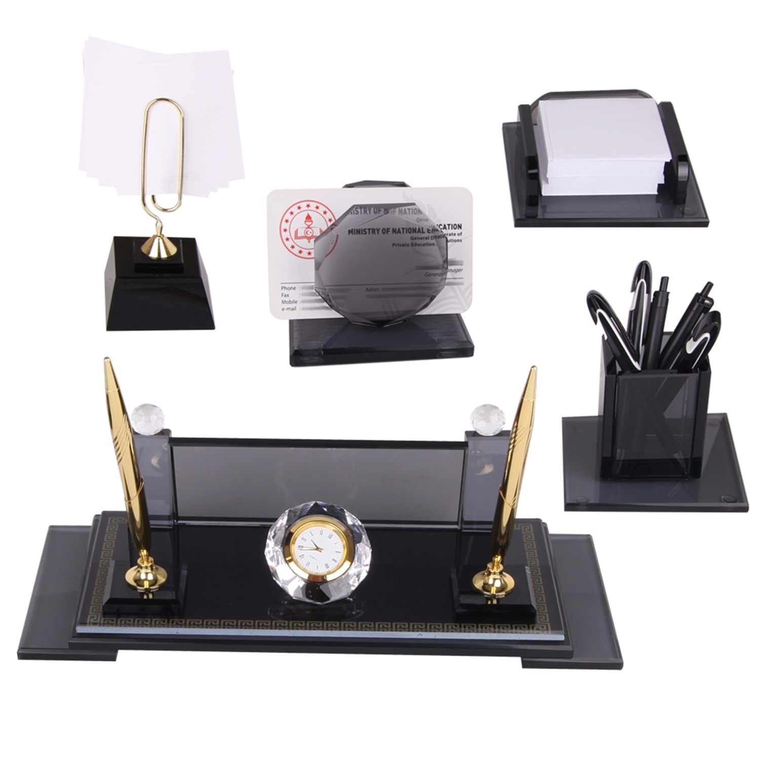 *5 Parça Masa Seti *İsimlik *Kartlık *Kalemlik *Küpnotluk *Notluk *Baskı: UV