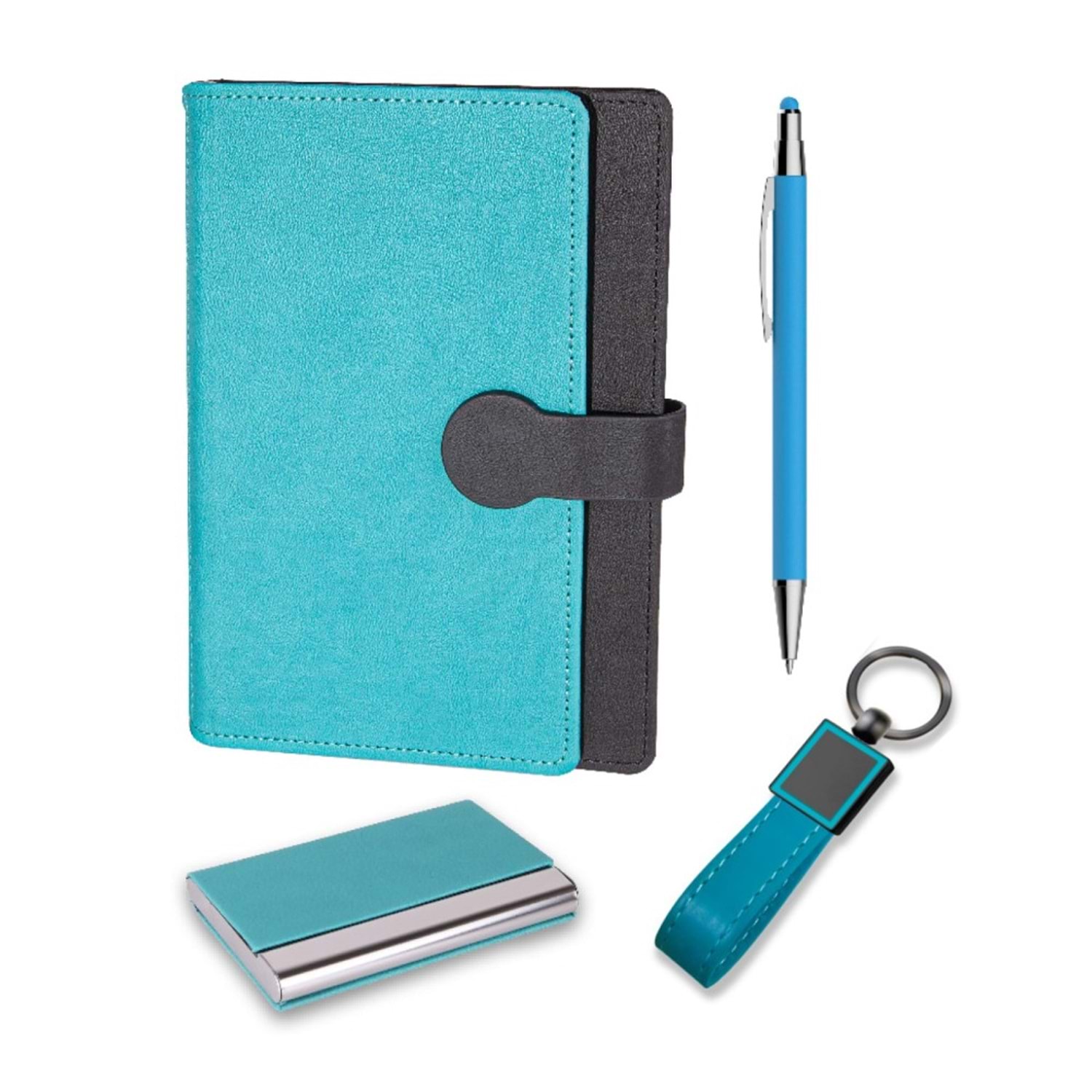 *15 x 21 cm Defter *Metal Tükenmez Kalem *Anahtarlık *Kartvizitlik *Baskı: Lazer, Serigrafi, Sıcak Baskı