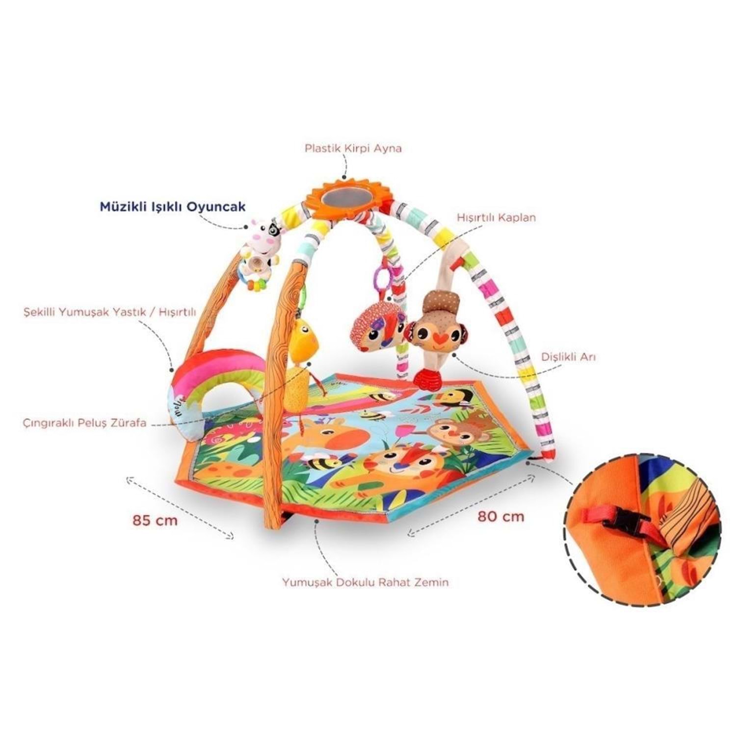 Asya Oyuncak Molie Orman Macerası Aktivite Merkezi Ve Oyun Halısı MOL-022 Molie Orman Macerası Aktivite Merkezi Ve Oyun Halısı Ölçü: 85x80 cm Boru Adet: 2 Çınçınlı Zürafa,Dişlikli Maymun,Hışırtılı Kaplan, Sert Plastik Şekilli Ayna ve