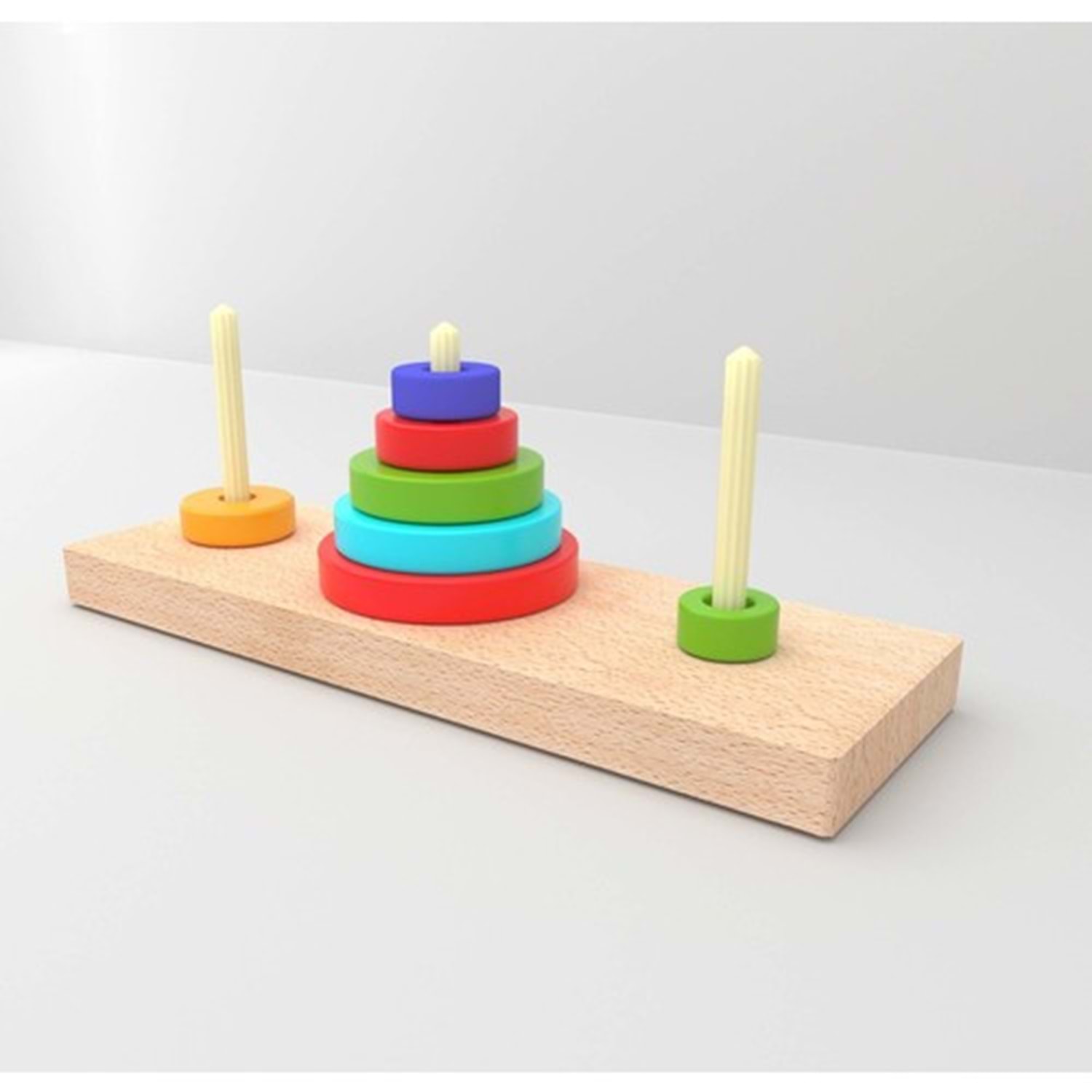 Redka Hanoi Kuleleri Mantık Oyunu Matamatiksel zeka oyunu olan hanoi kuleleri çocukların matematiksel zekasını, mantıksal algıyı, şekilsel algıyı koordinasyon ve oyun kurabilme gibi kazanımlar sağlayan müthiş zevkli bir oyundur. Bulmaca meraklıları için hanoi oyununu çözmek büyük başarıdır herkes buna bayılacaktır OYUNUN KAZANDIRDIKLARI Matamatiksel zeka oyunu olan hanoi kuleleri çocukların matematiksel zekasını, mantıksal algıyı, şekilsel algıyı koordinasyon ve oyun kurabilme gibi kazanımlar sağlayan müthiş zevkli bir oyundur. Bulmaca meraklıları için hanoi oyununu çözmek büyük başarıdır. Matematik ile olan ilişkisi Hanoi kulesi matematik öğretiminde eğitici bir oyun olarak birçok ülkenin öğretim programında bulunmaktadır. Hanoi Kulelerinde disk sayısı ile hamle sayısı arasındaki ilişkiyi açıklayacak olursak 3 disk için sırası ile toplam hamle sayısı 7 olacaktır. Disk sayısı ile hamle sayısı arasında şöyle bir ilişki vardır. 2 adet disk n=2 alınırsa d= 2x2-1 = 3 hamle sayısı olmalıdır. O halde, n tane disk için toplam hamle sayısı 2'nin d. kuvveti olacaktır.