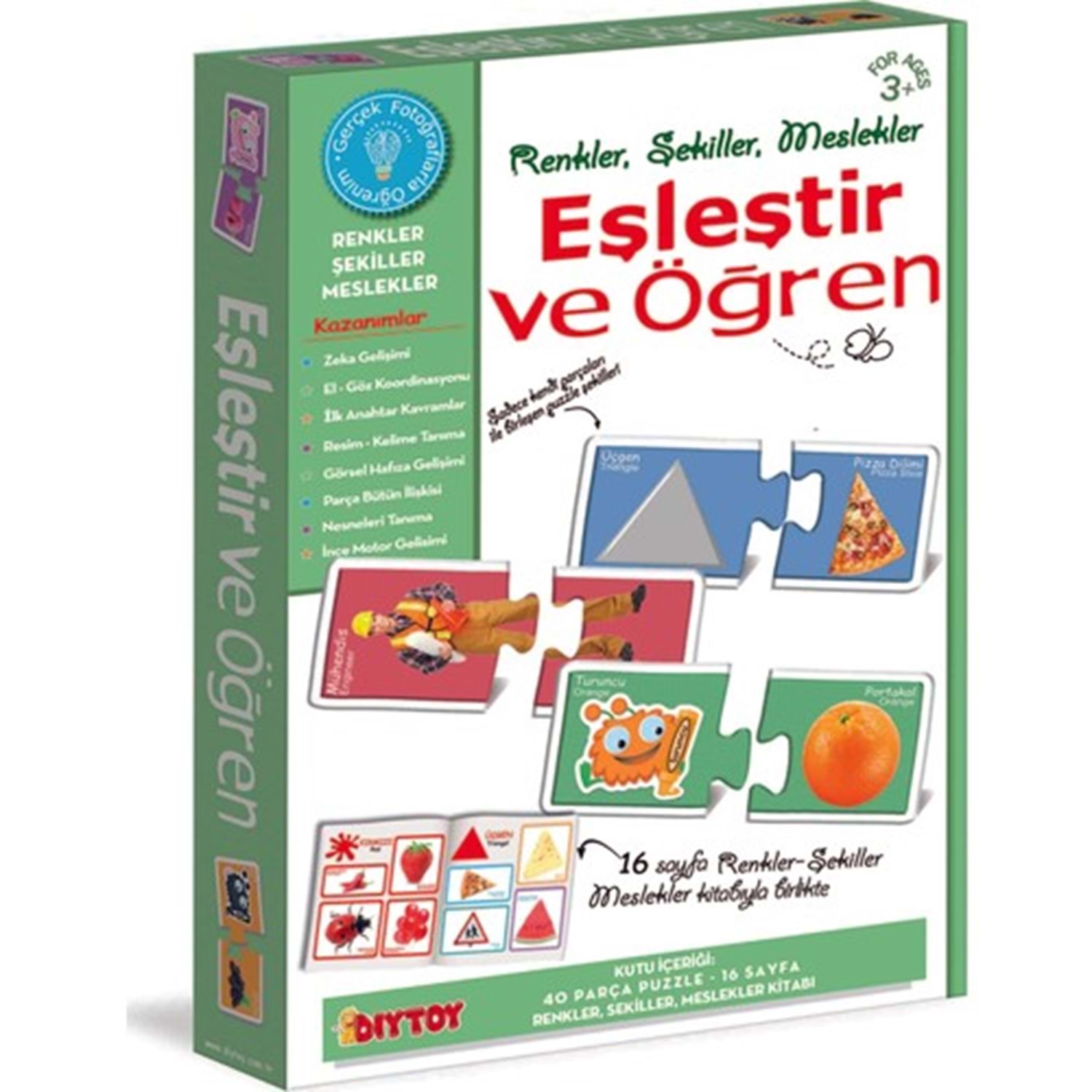 Diy-Toy Eşleştir Öğren Meslekler- Renkler-Şekiller 20 ADET 2 Lİ PUZZLE TOPLAM 40 PARÇA, 1 ADET 16 RENKLER ŞEKİLLER KİTABIYLA BERABER.