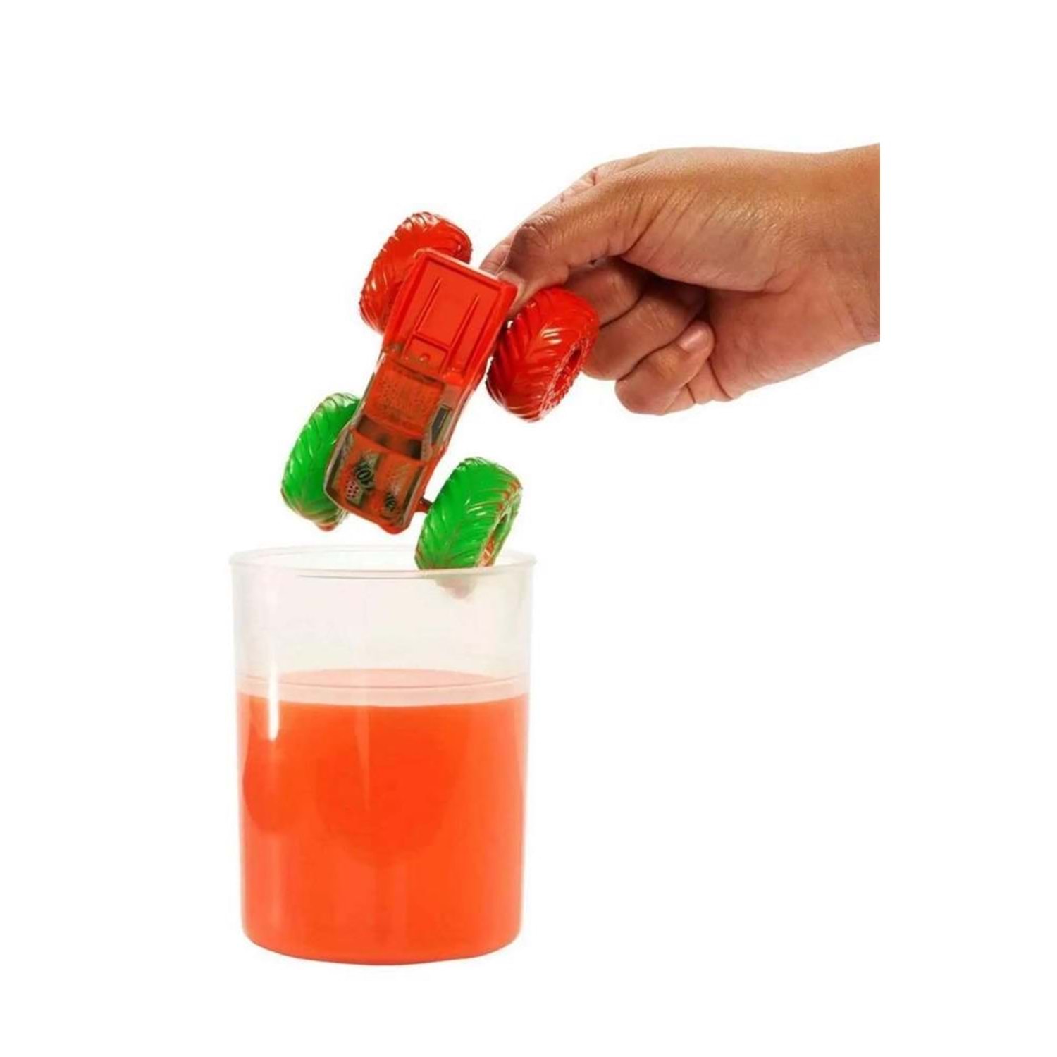 Hot Wheels Monster Trucks Renk Değiştiren Arabalar serisindeki diğer araçlara su püskürtüp araçların rengini değiştirmek için bu klipsli su tankını kullanın. Su tankı, renk değişimi eğlencesiyle birlikte çarpışma heyecanının da dahil olduğu muhteşem bir su savaşı imkanı da sunar.