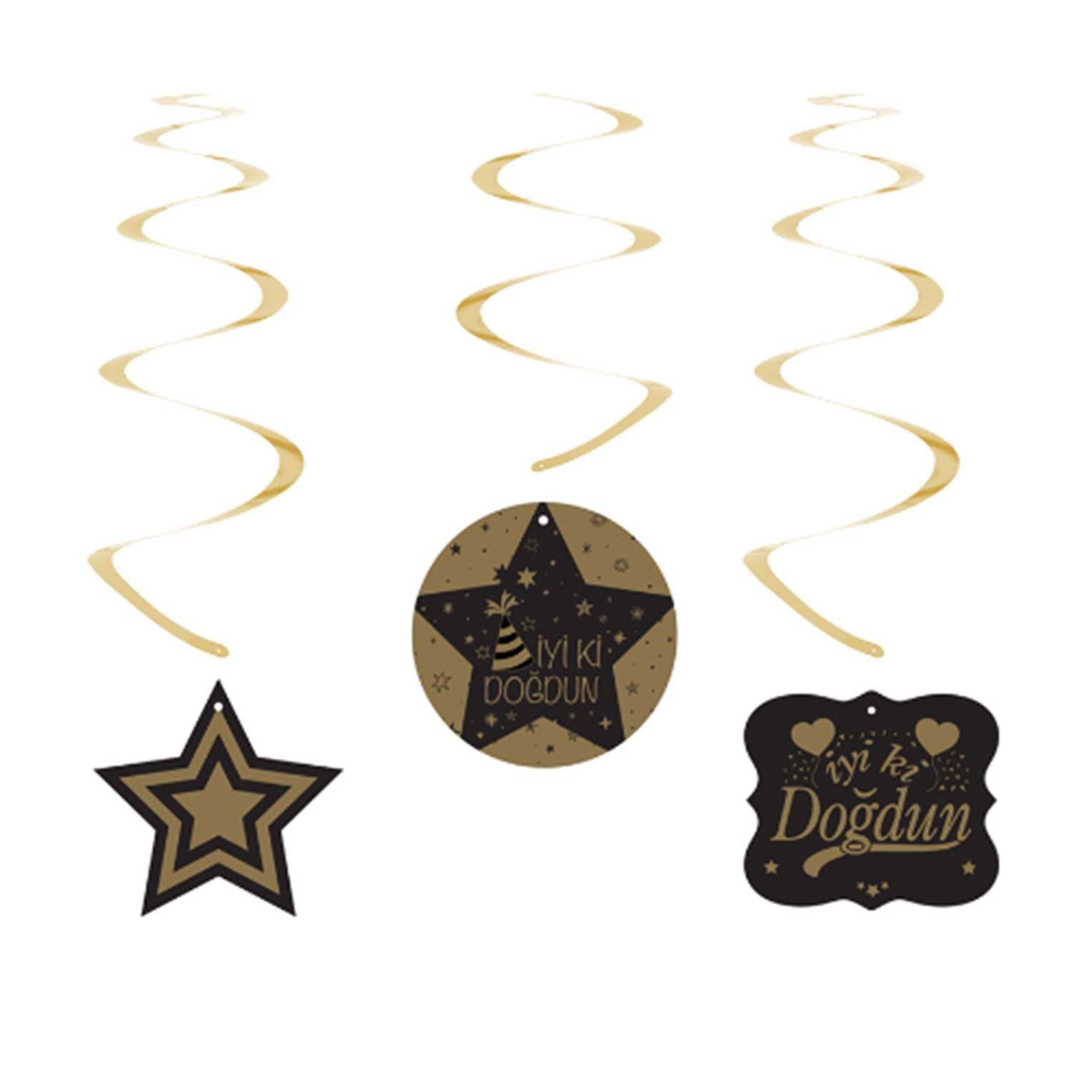 Kikajopy SW12 İyi ki Doğdun Altın Siyah Sarkıt Süs