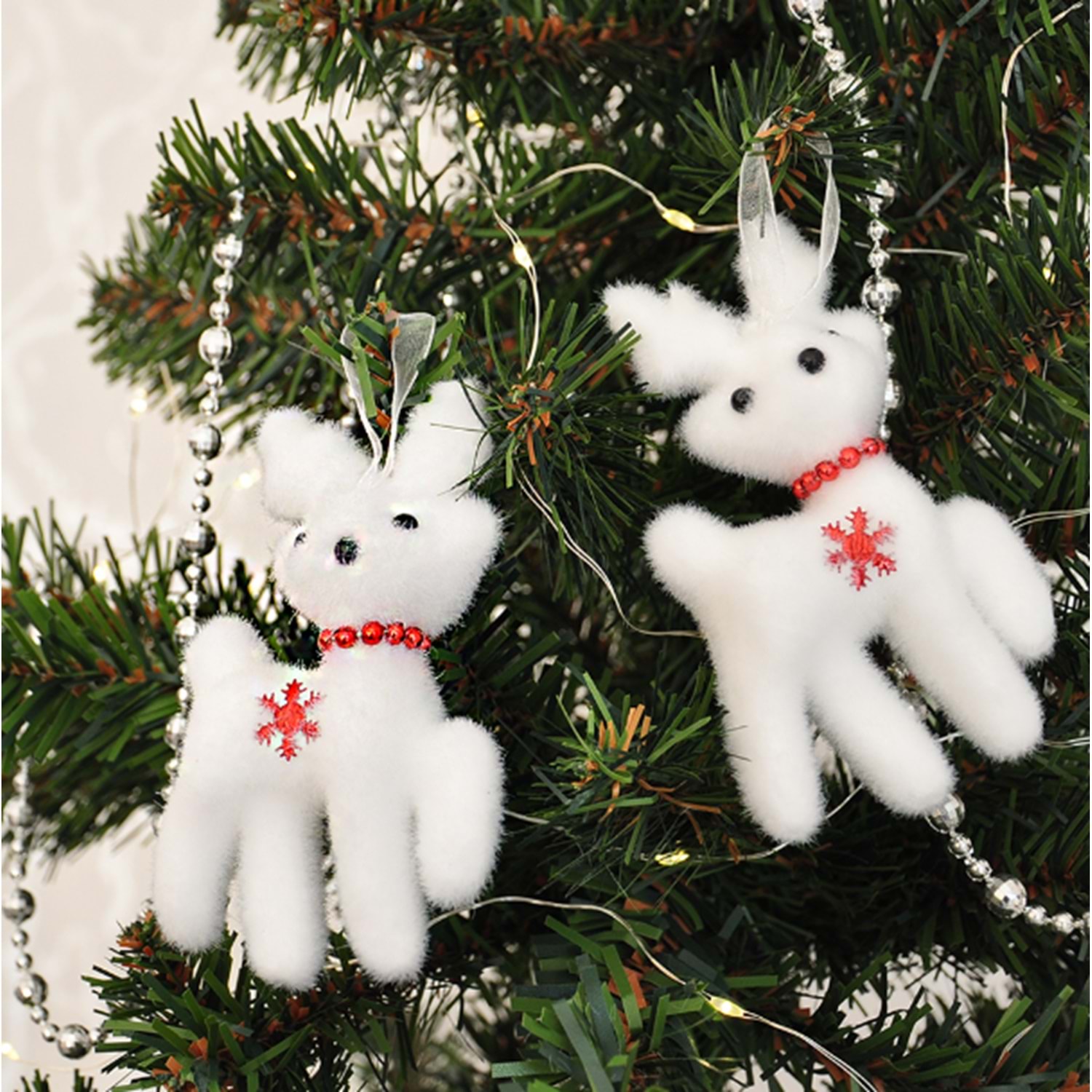 Kika Yılbaşı Ağaç Süsü Simli Beyaz Geyik 2li